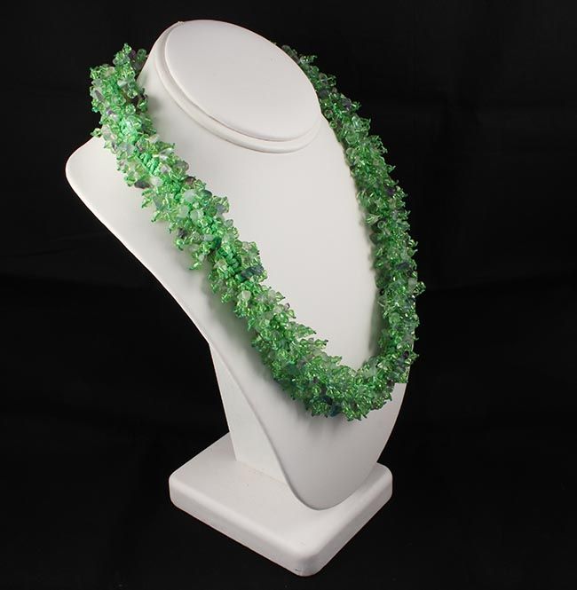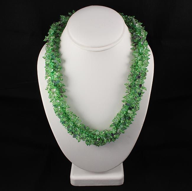 Chrocheted Wrap Necklace with Beads & Gemstone **|**|** 842.50CARAT Natural Stone Green Chip and Beads Crocheted by Hand Necklace with metal lock ; MSRP: $0