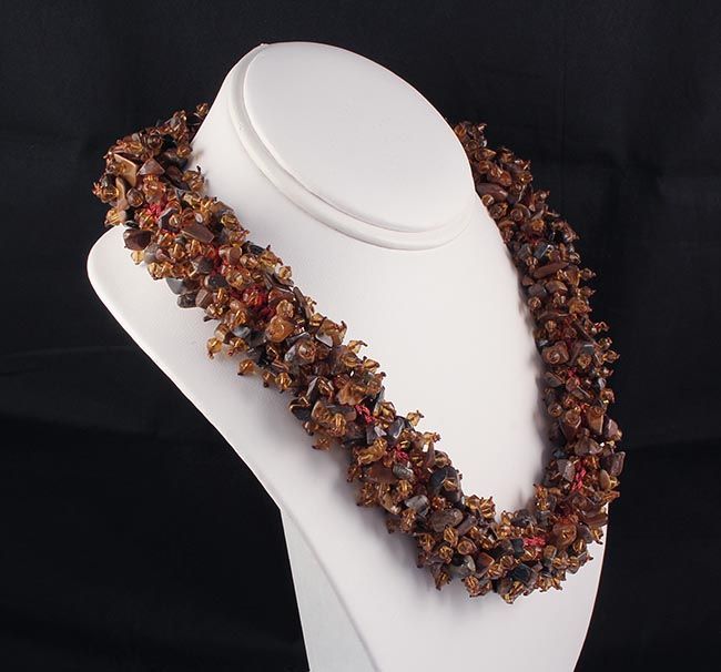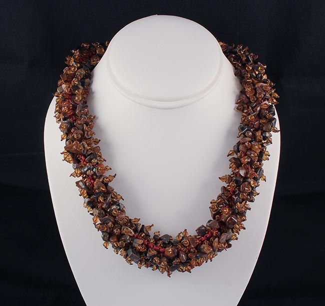 Chrocheted Wrap Necklace with Beads & Gemstone **|**|** 1014.00CARAT Natural Stone Tiger Eye Chip and Beads Crocheted by Hand Necklace with metal lock ; MSRP: $0