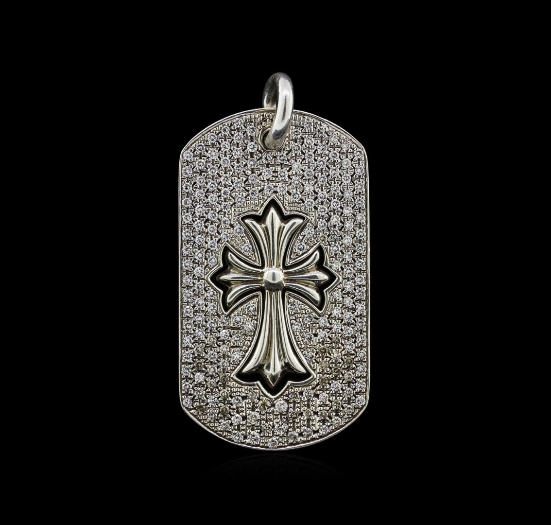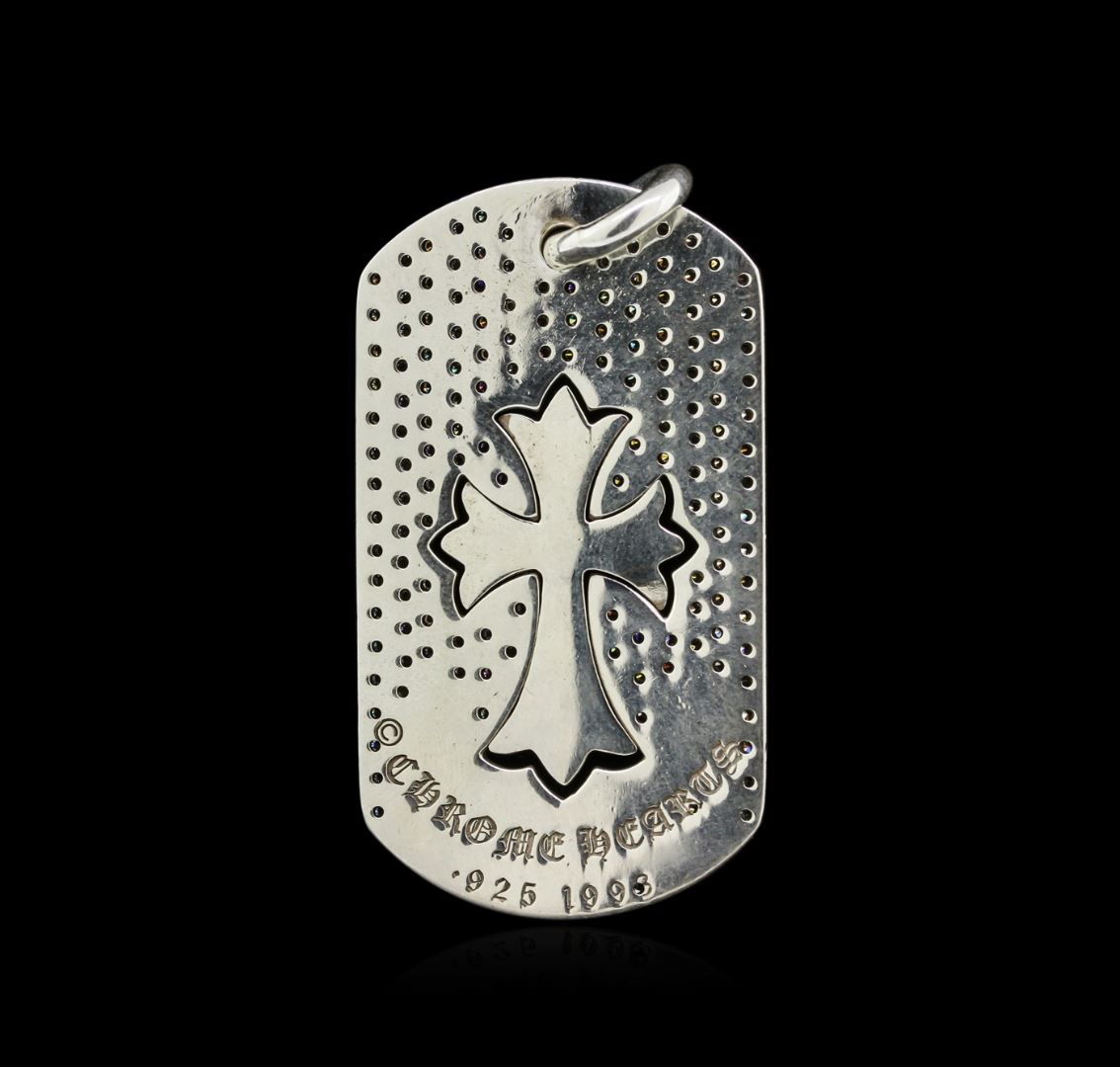 One Chrome Hearts cross dog tag pendant featuring: Silver weighing 17.78 grams containing diamonds with a total weight of 2.50ct.