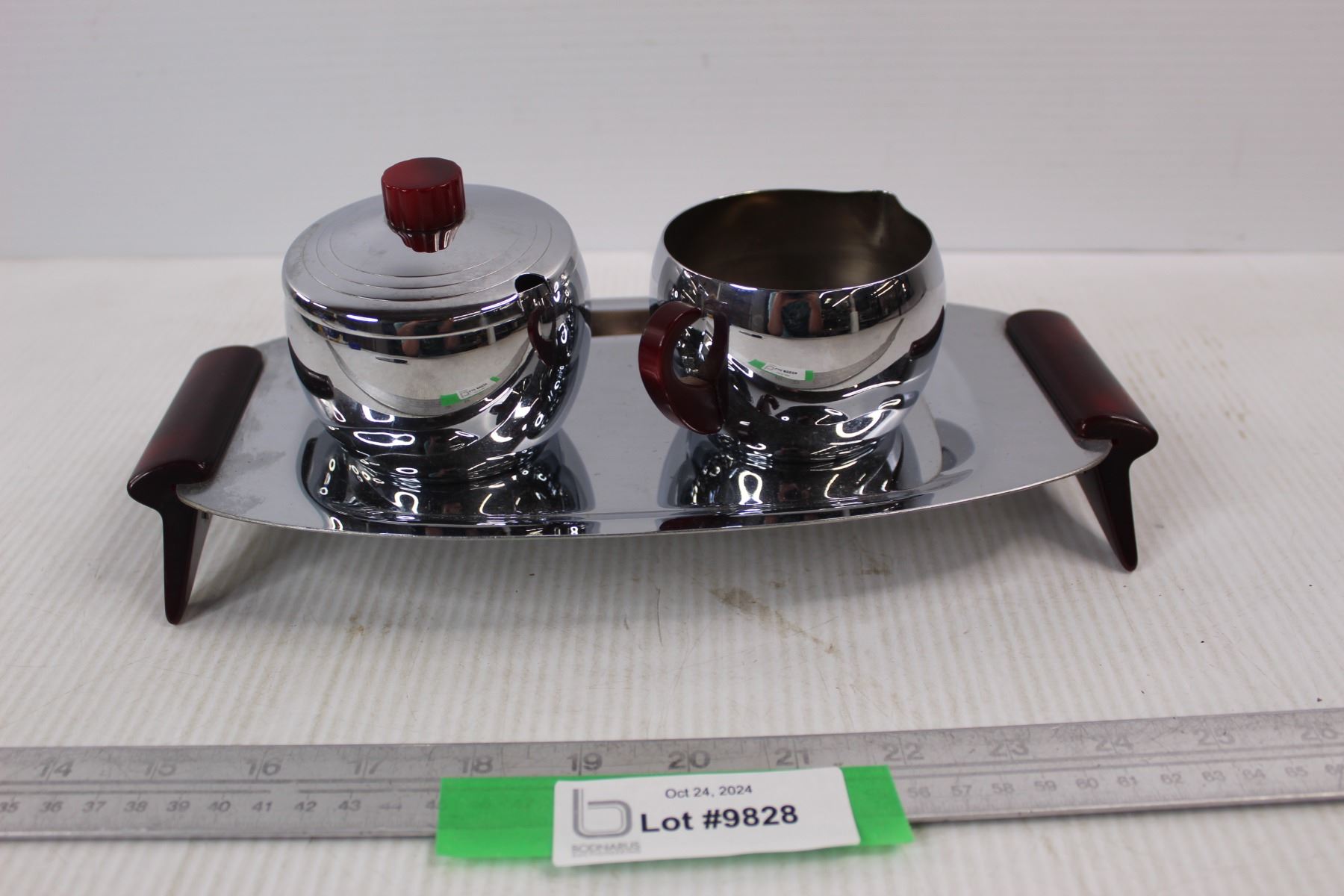 Chrome Miniature MCM Cream and Sugar SetOn Tray