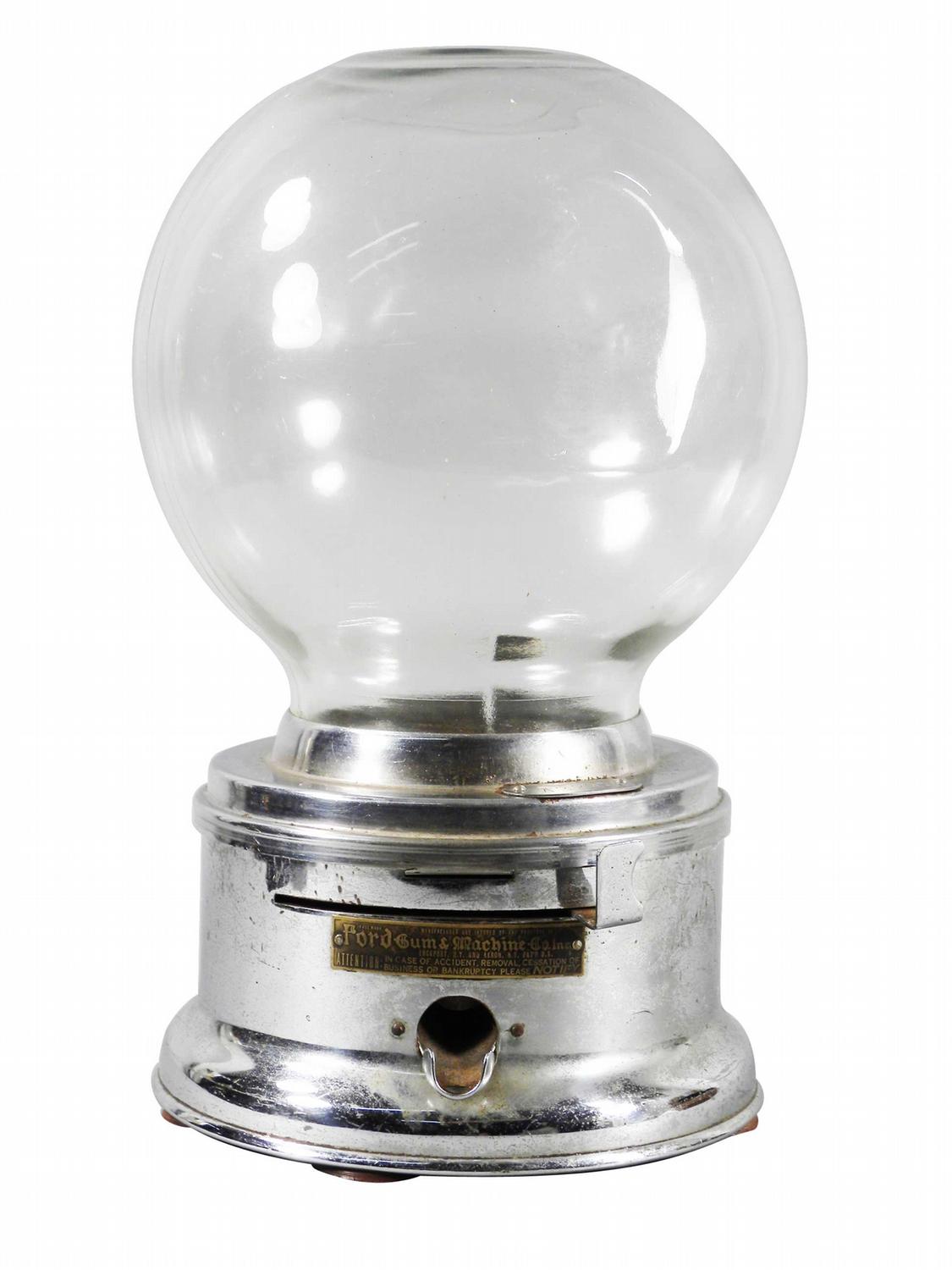 Chrome Plated Gumball Machine. Ford Gum & Machine Co. Inc. Lockport and Akron, NY. Very good original condition. 12 inches tall.