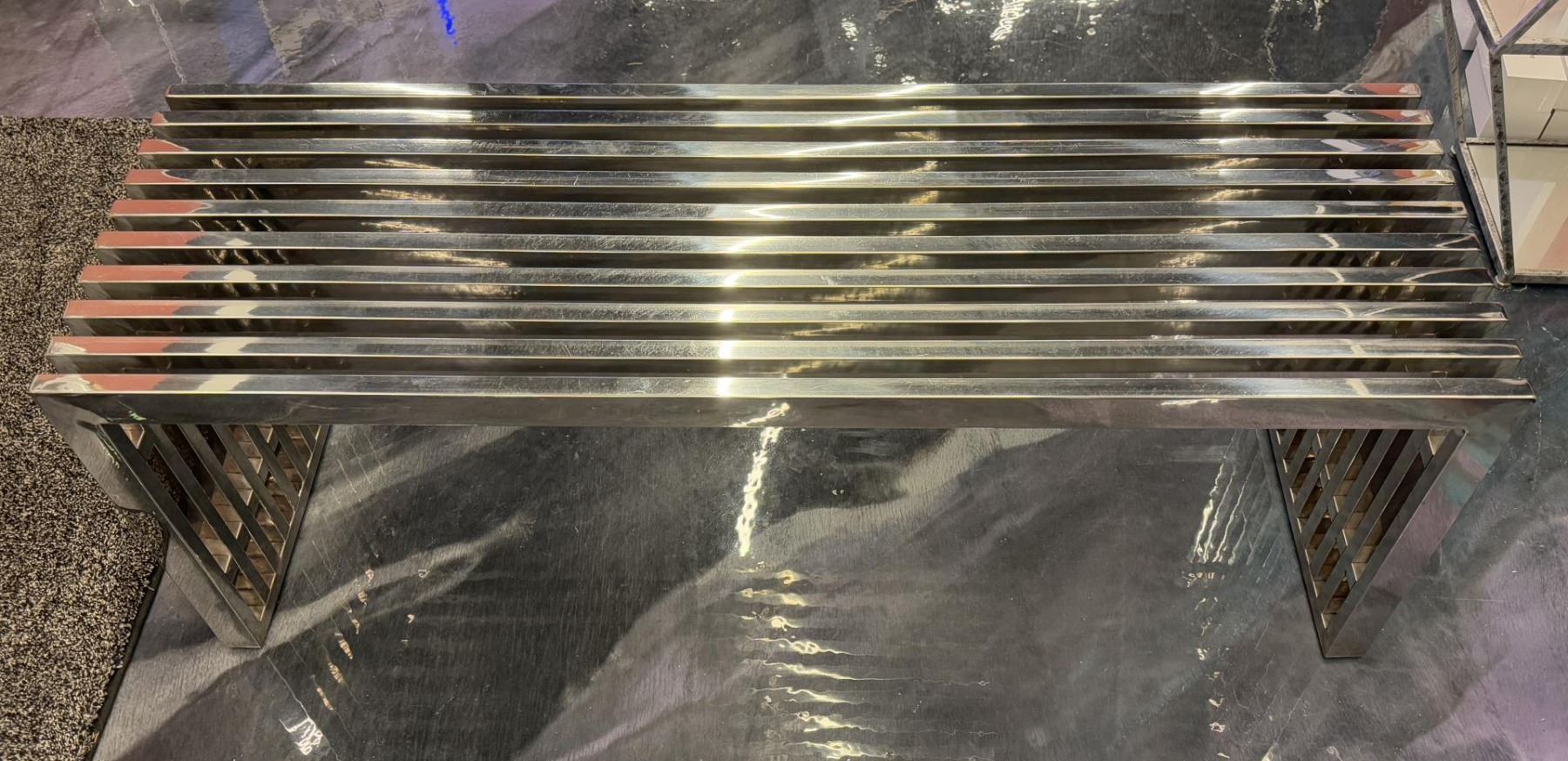 This item requires pickup at our facility. Bench is 46 1/2" long by 16 1/2" tall by 15 1/4" wide.