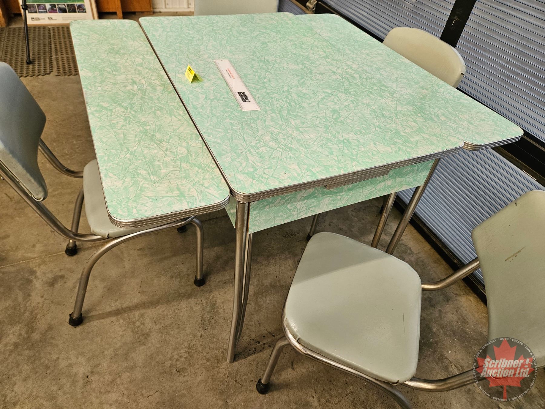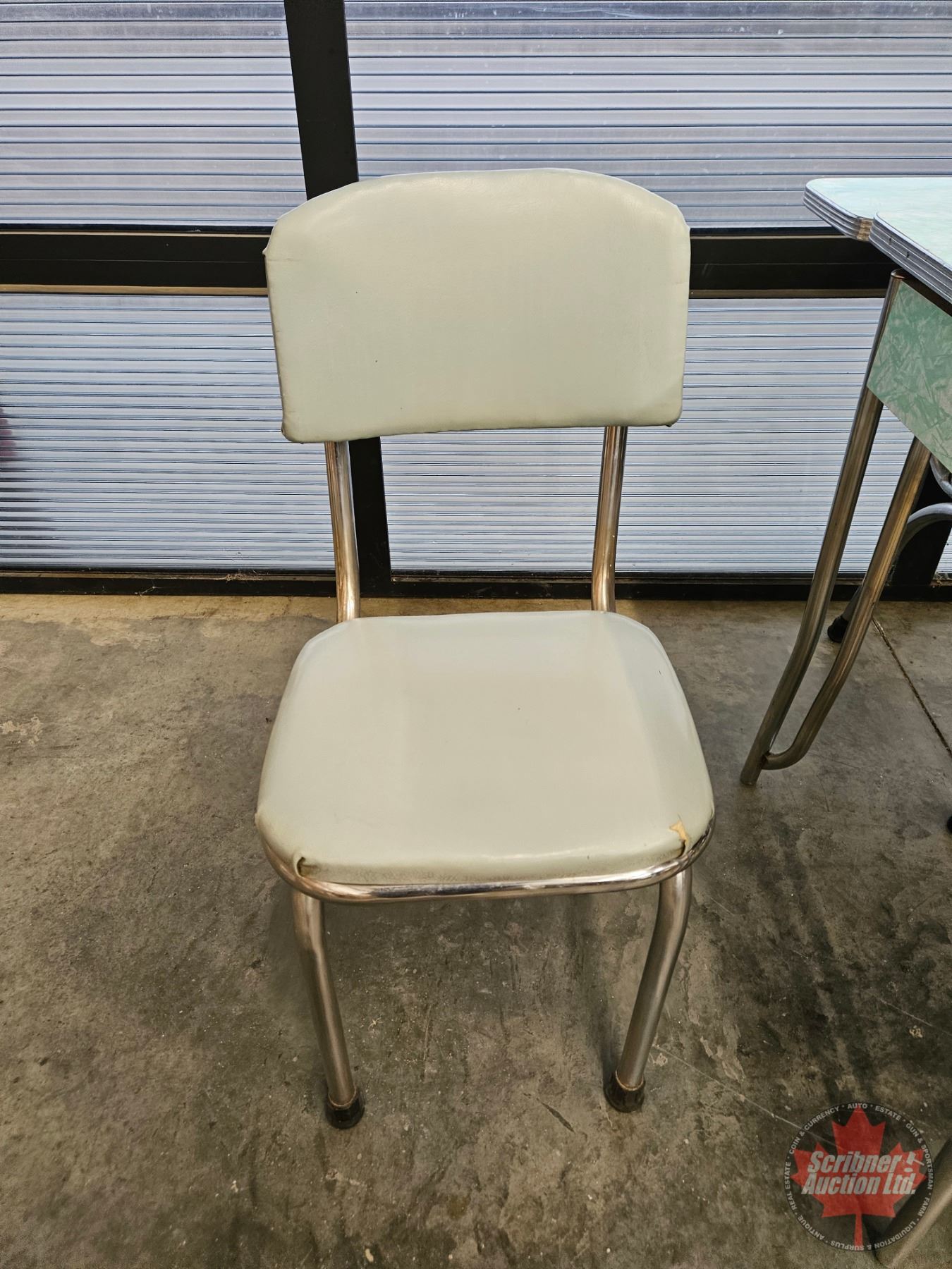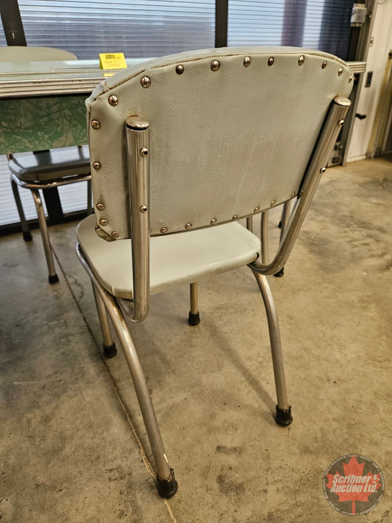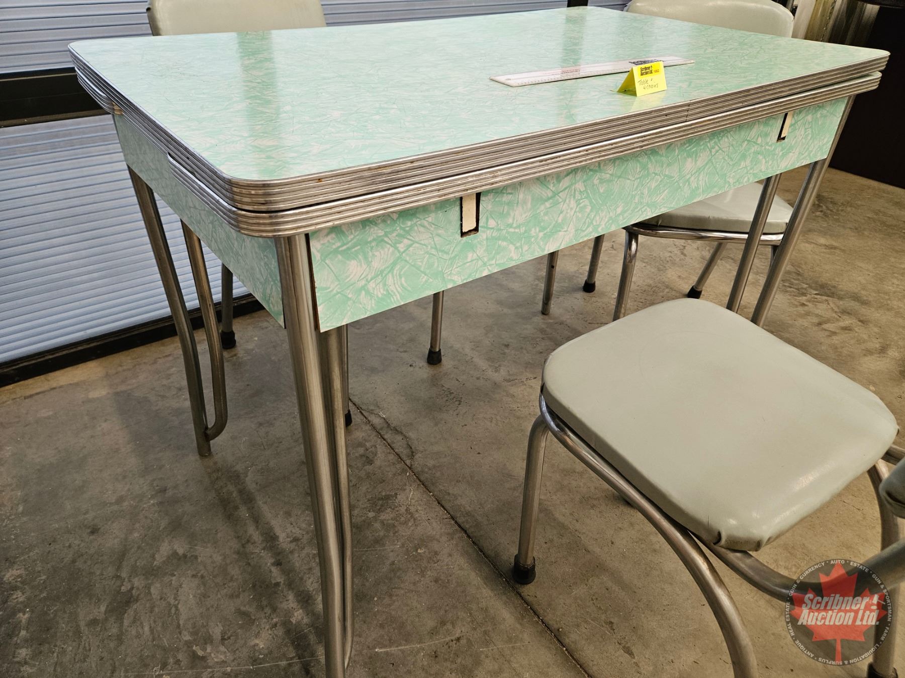 Chrome Table & 4 Chairs (Cracked Ice Pattern - Green) (Refectory Table)