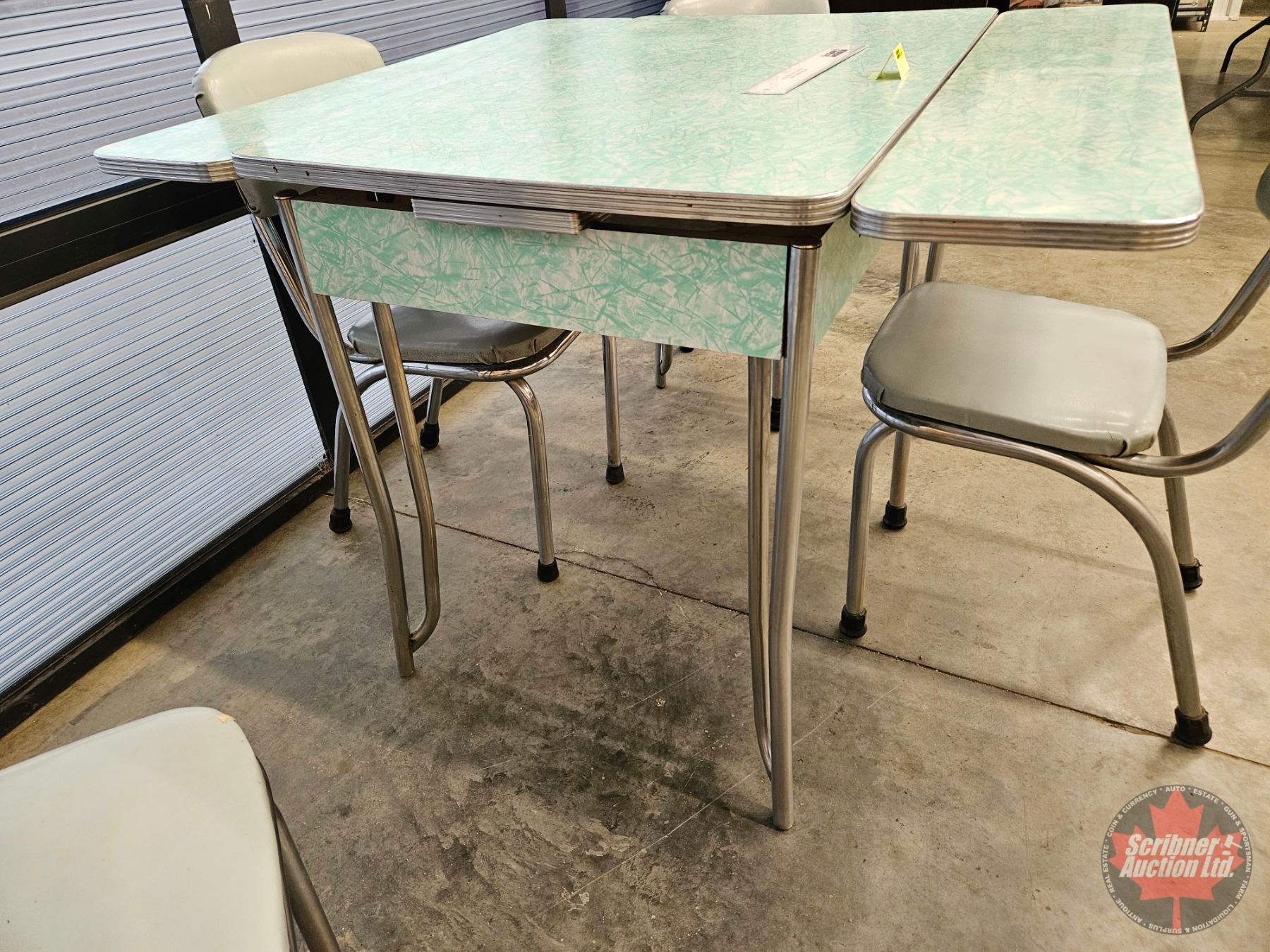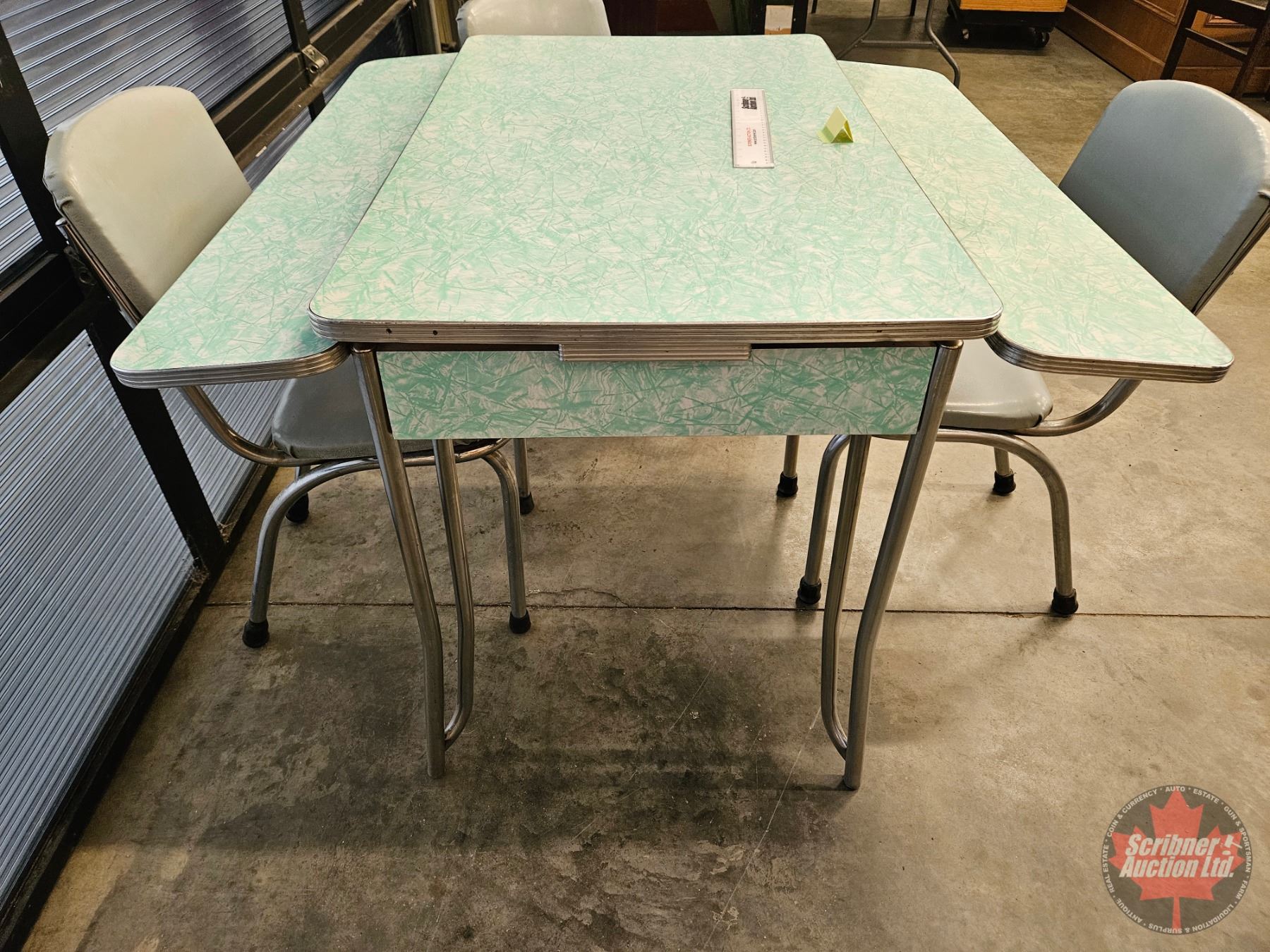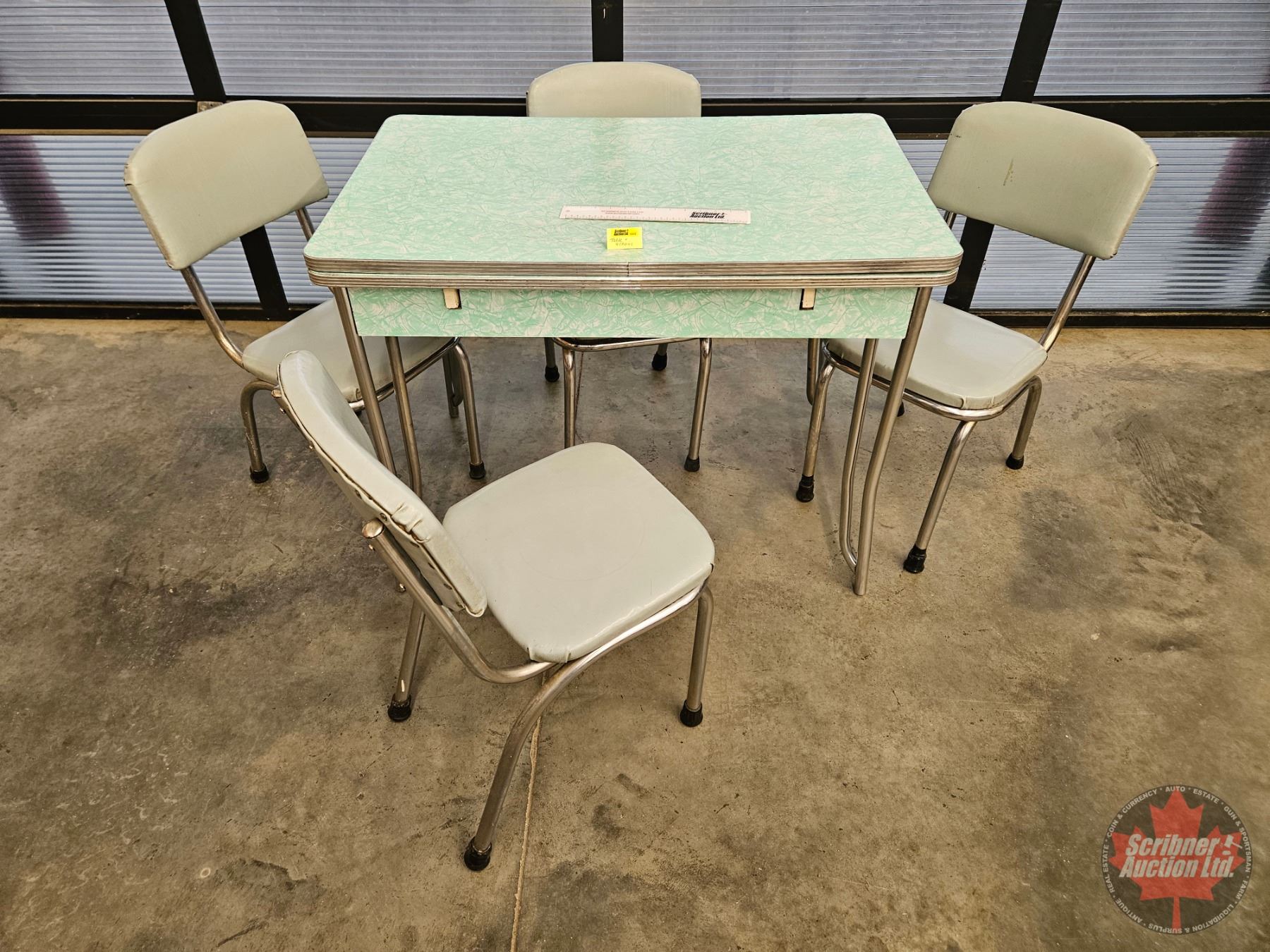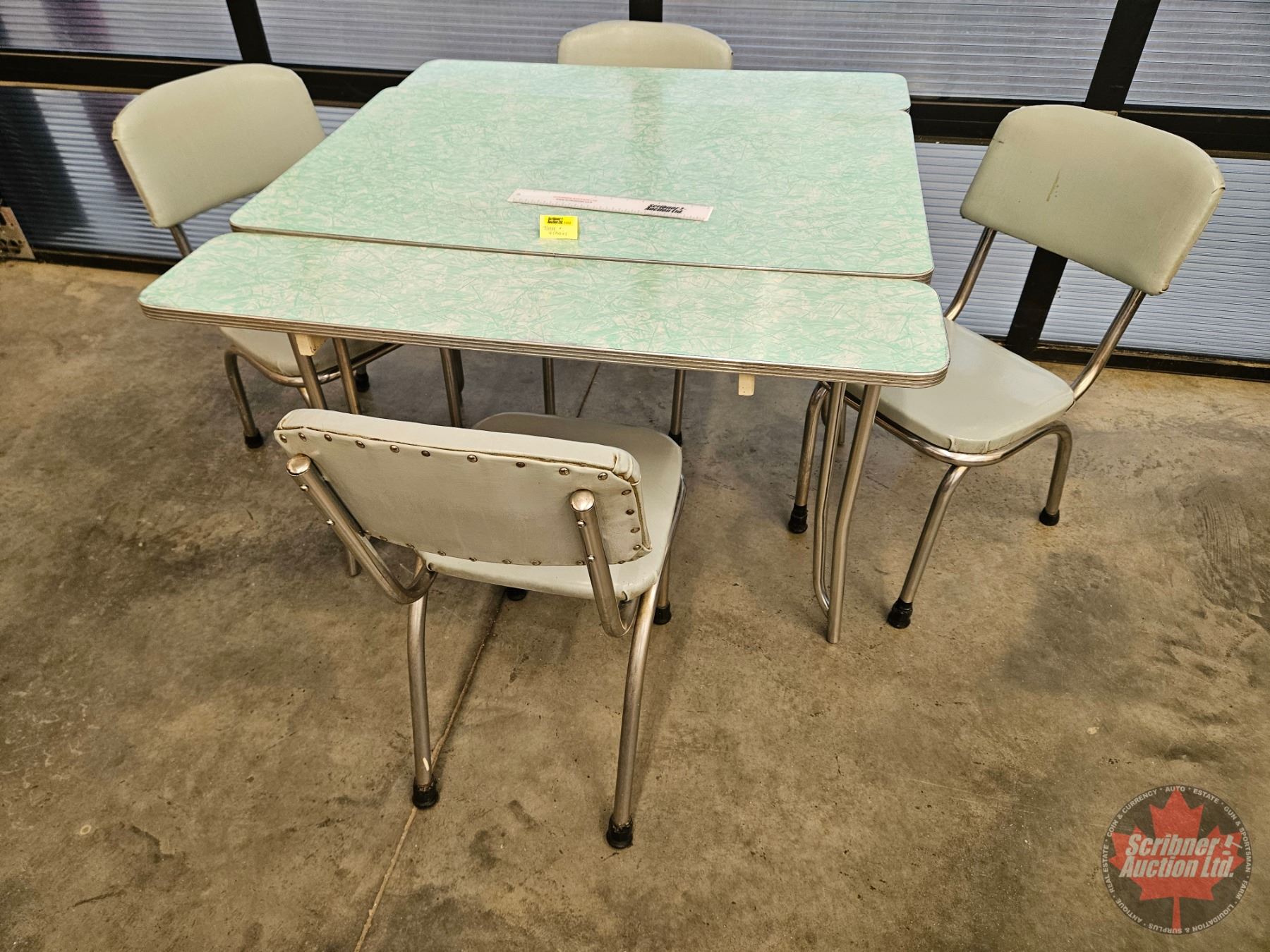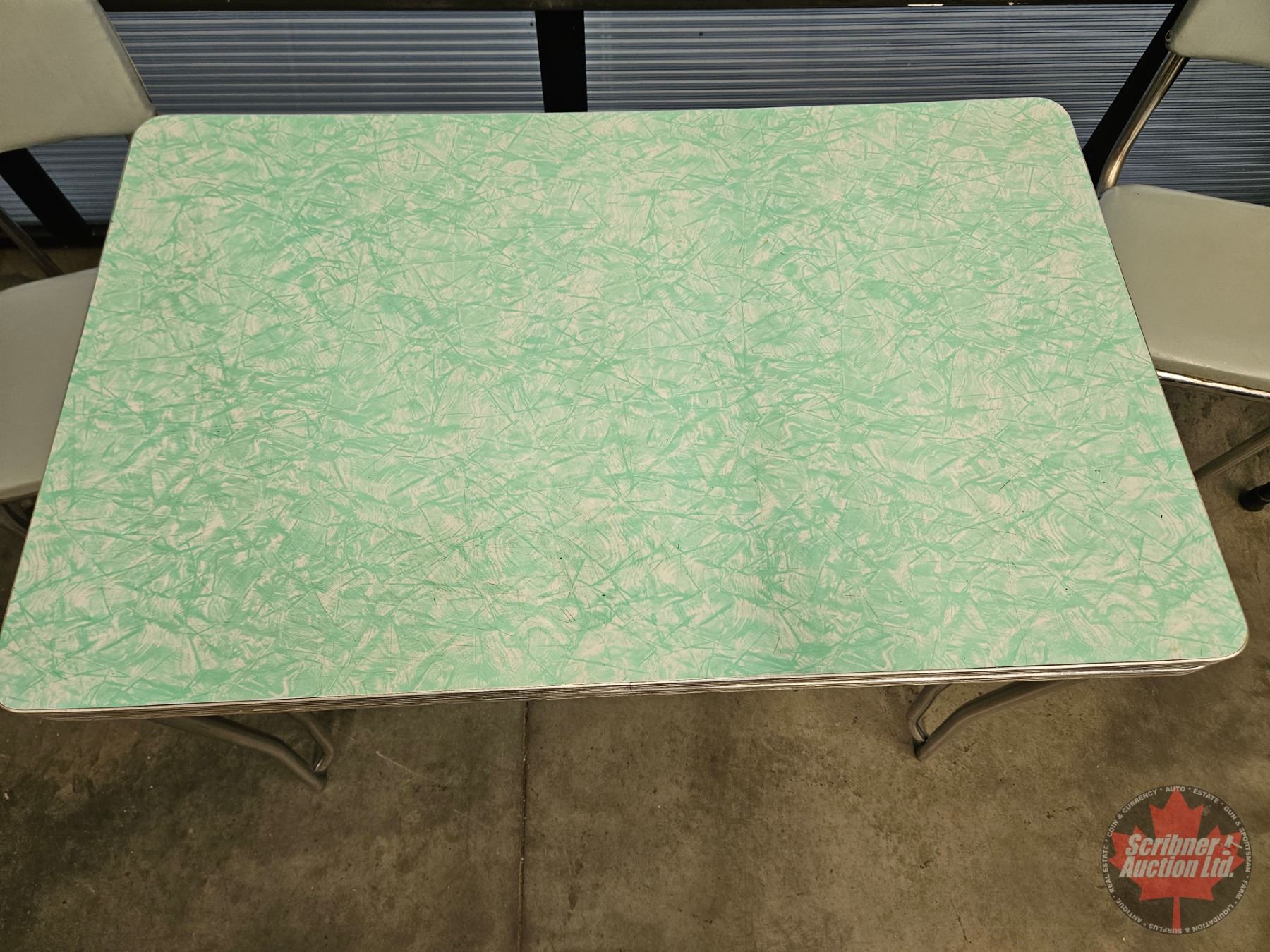 Chrome Table & 4 Chairs (Cracked Ice Pattern - Green) (Refectory Table)