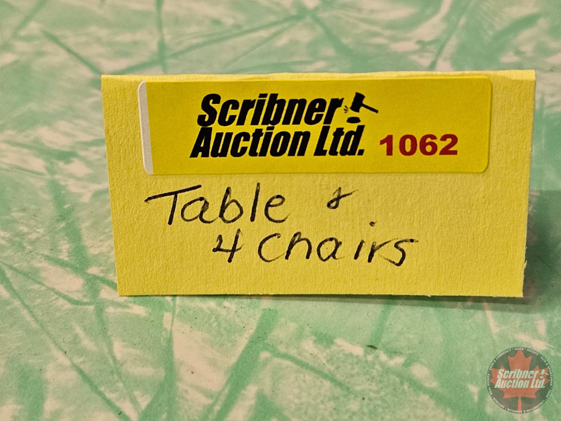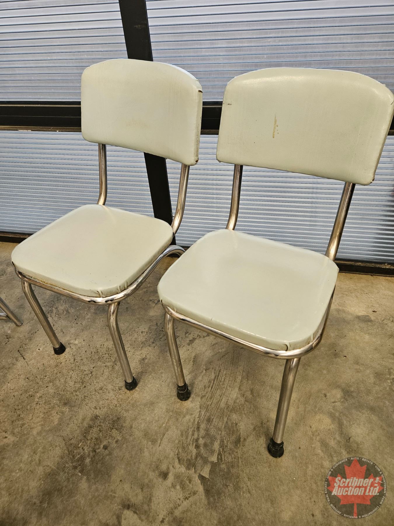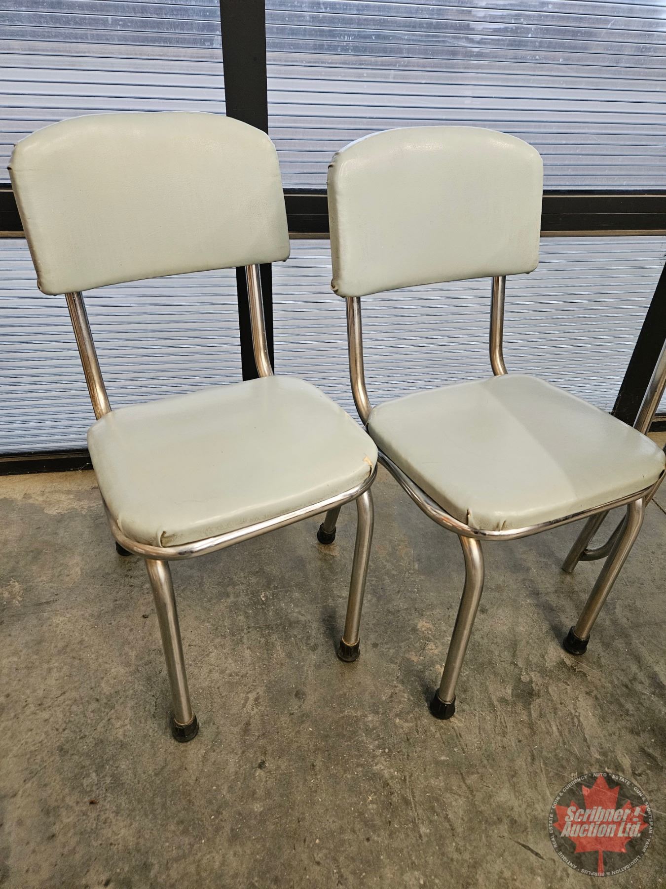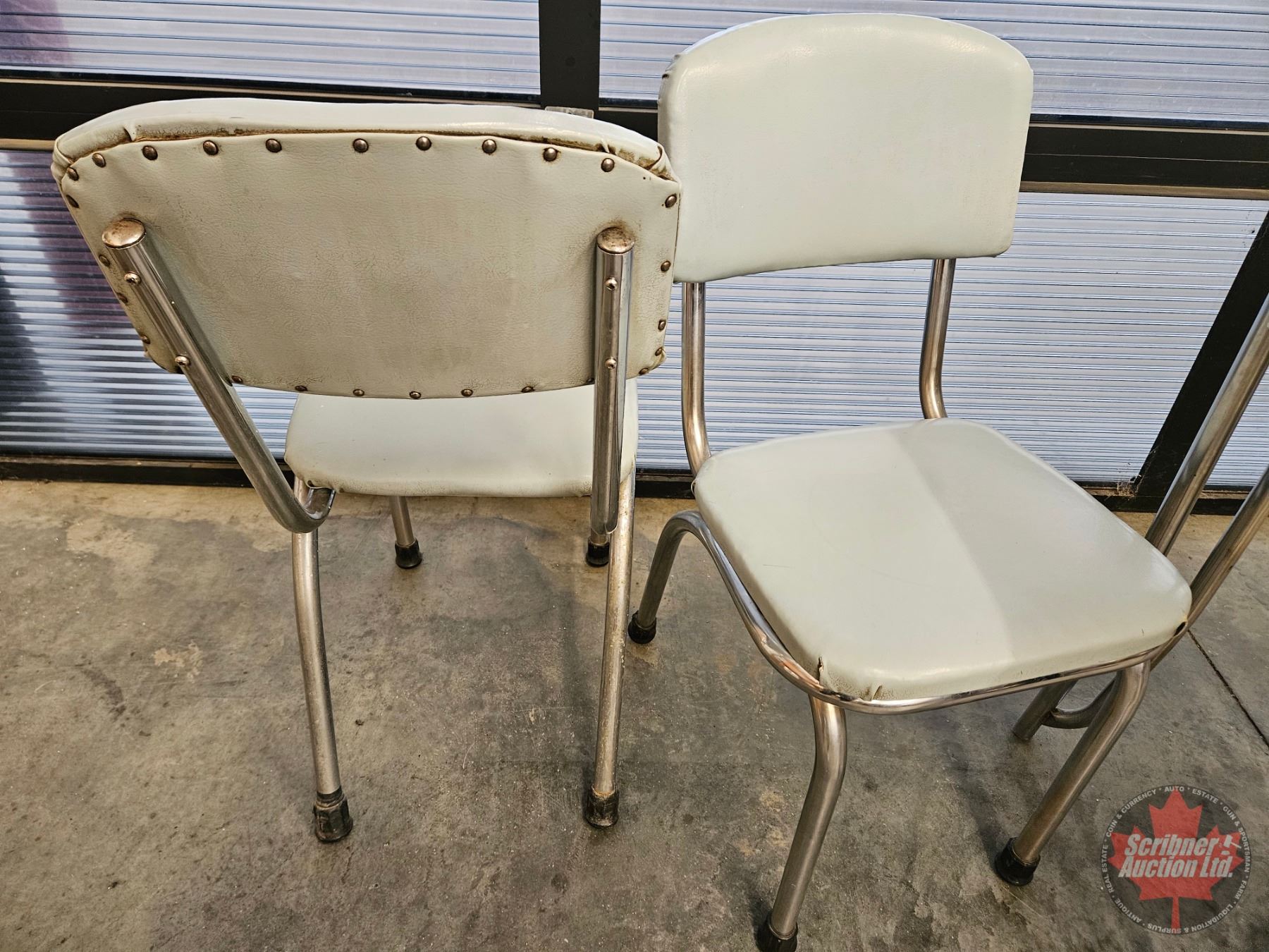 Chrome Table & 4 Chairs (Cracked Ice Pattern - Green) (Refectory Table)