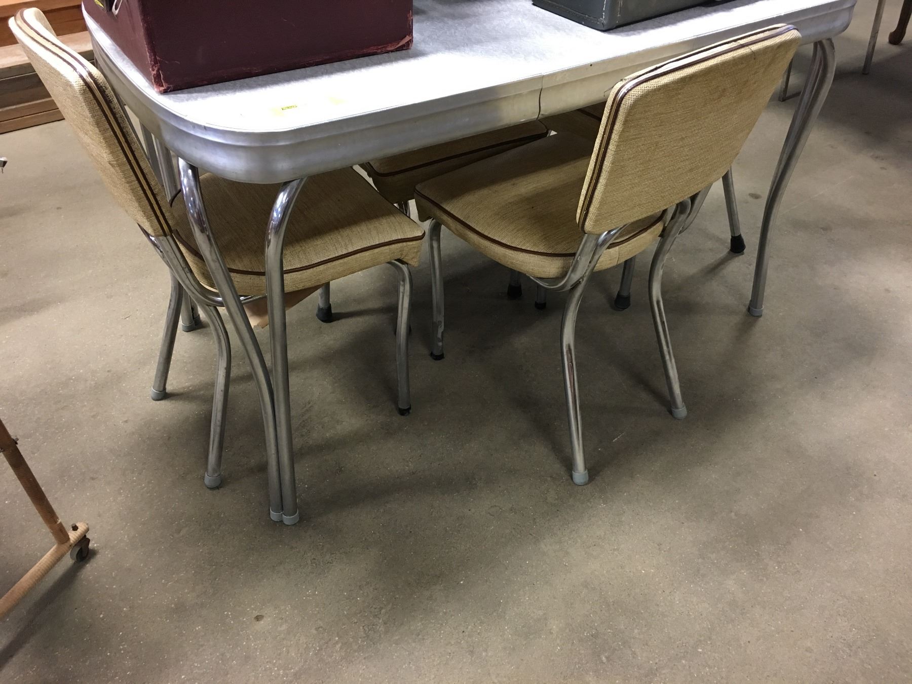 Chrome Table & 4 Chairs (Table has 1 Leaf)