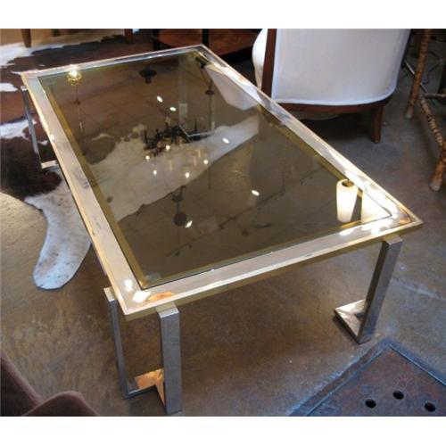 This Art Deco coffee table has a glass top and is made of chrome and brass. A very simple and elegant piece.