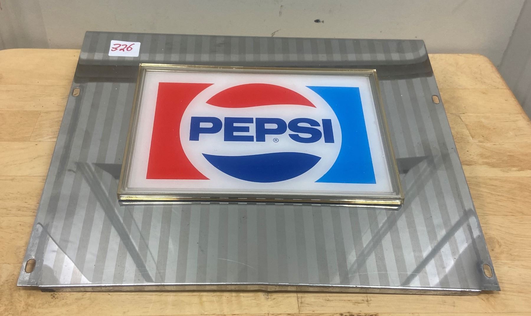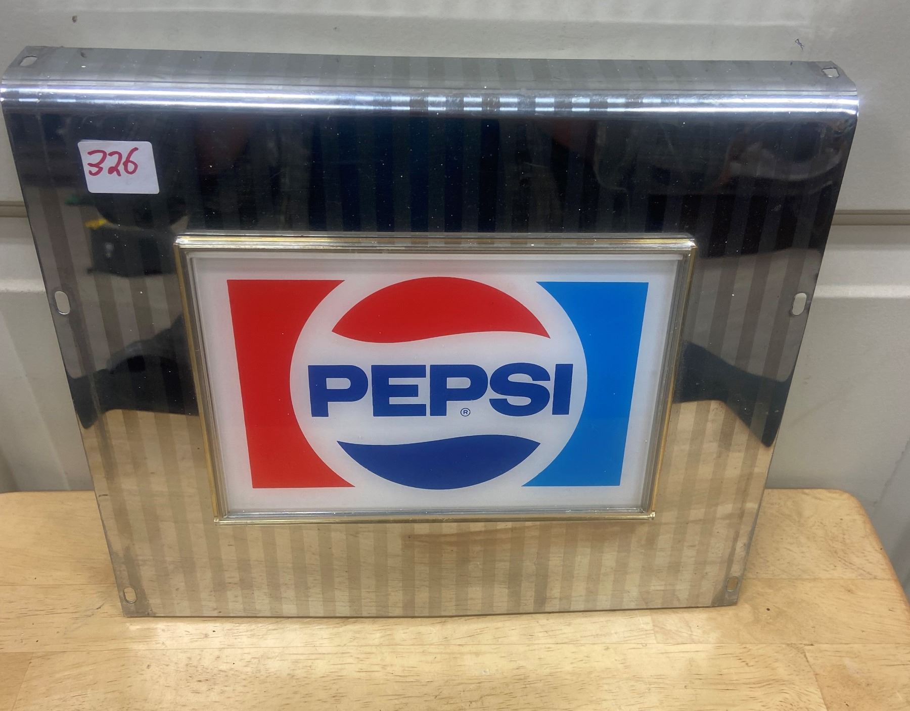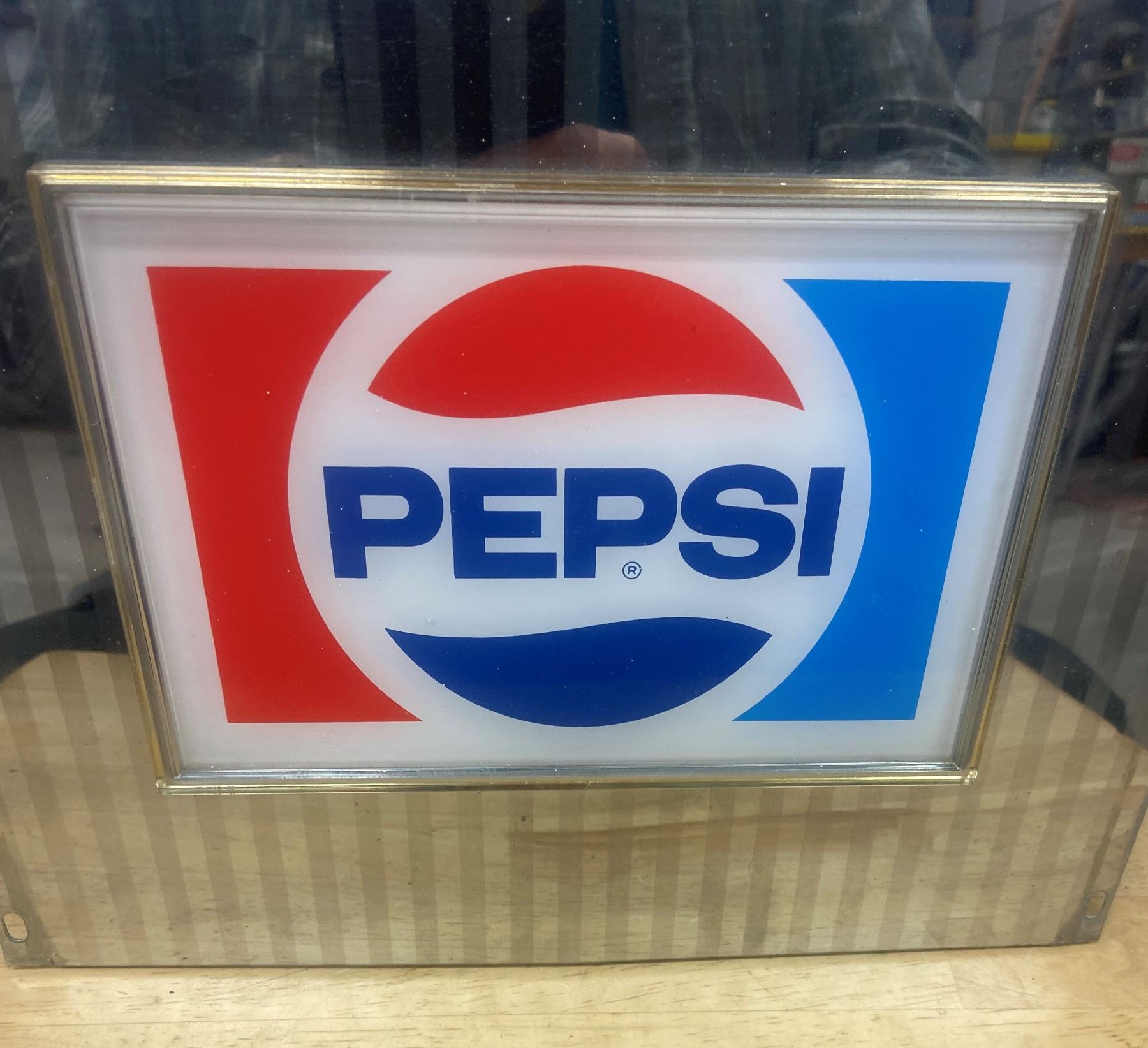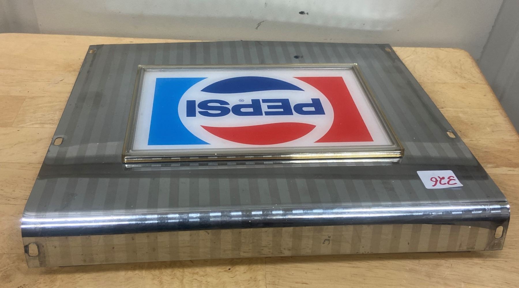 Chrome and plastic Pepsi sign of soda dispenser 10"x12"