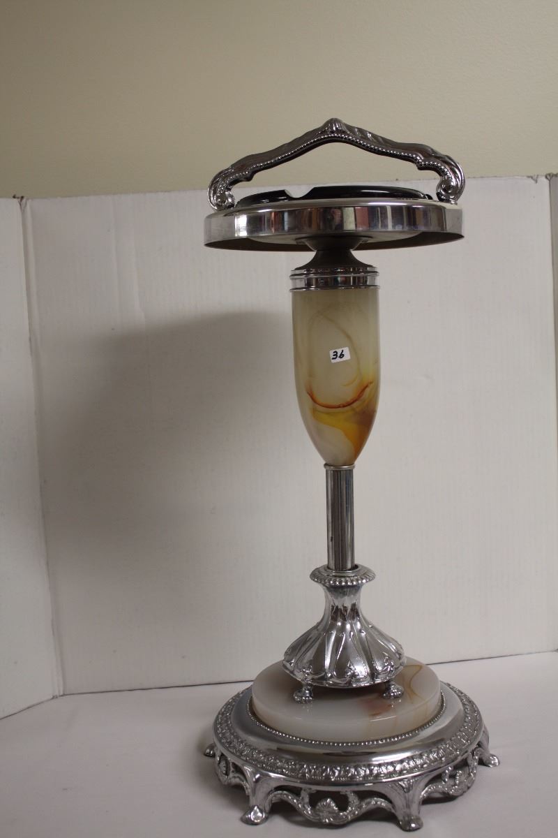 This is a chrome ashtray with marble