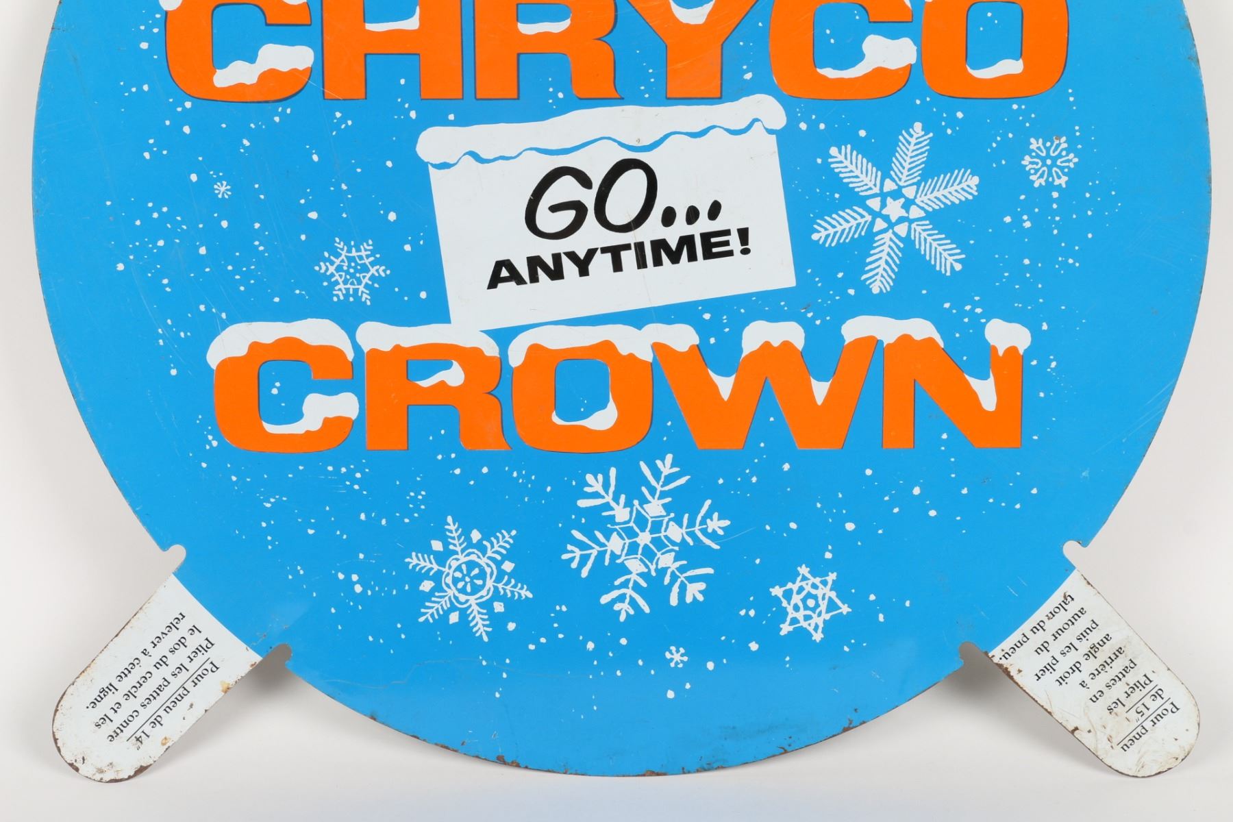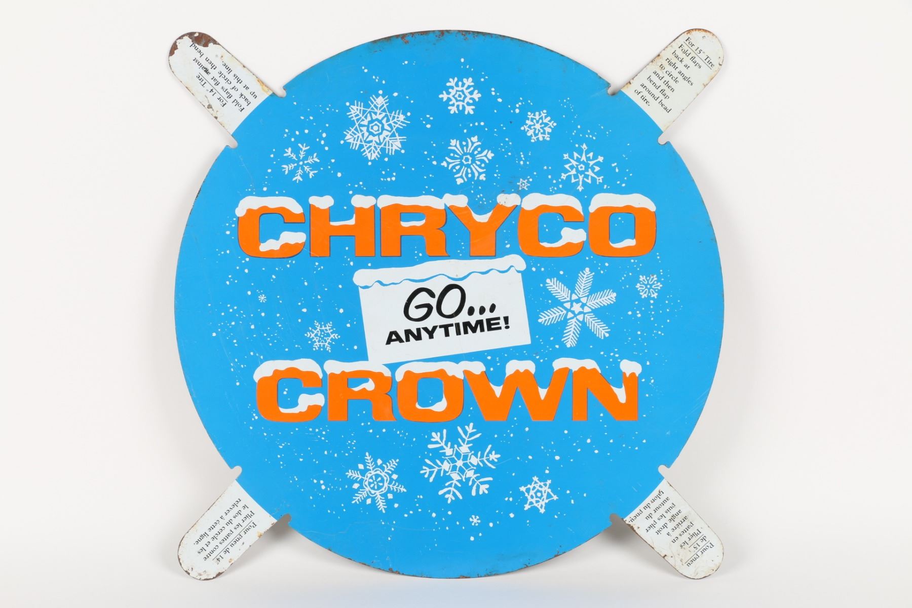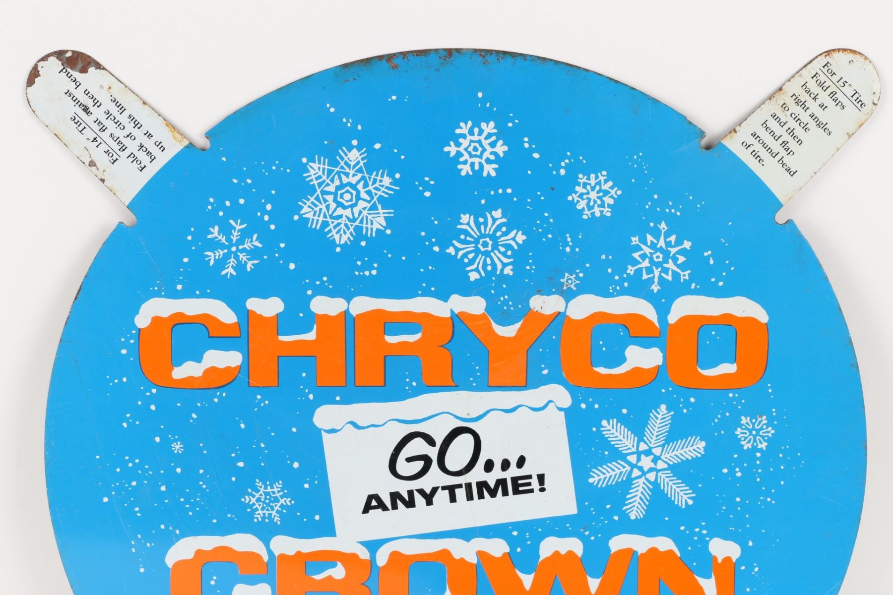 Two (2). Circa 1960s. Single-sided lithographed tin. Designed to fit within a new tire for promotional purposes. Minor edge and surface flaking. Oxidization. 16" x 16" with tabs. $150-250.