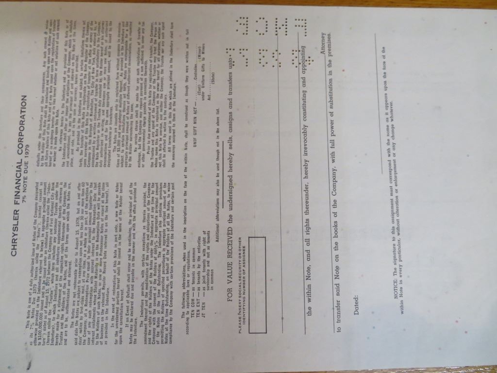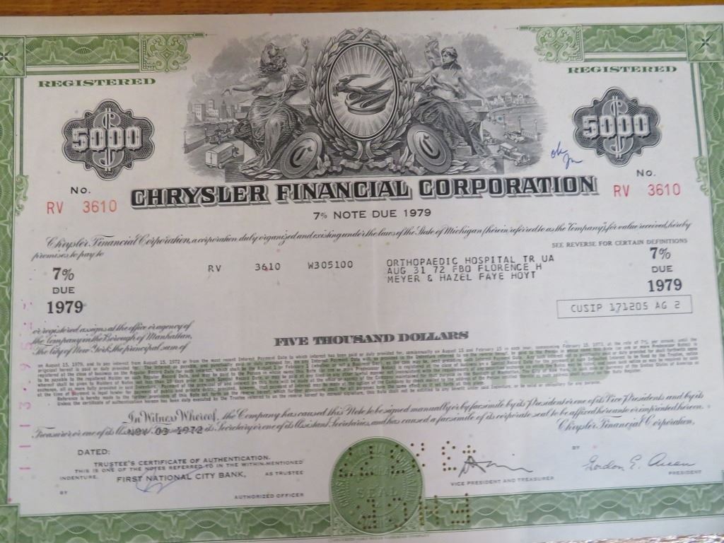 Chrysler Finance Stock Certificate