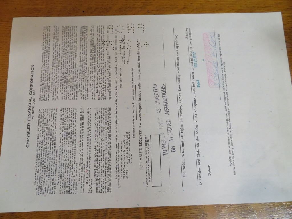 Chrysler Financial Stock Certificate