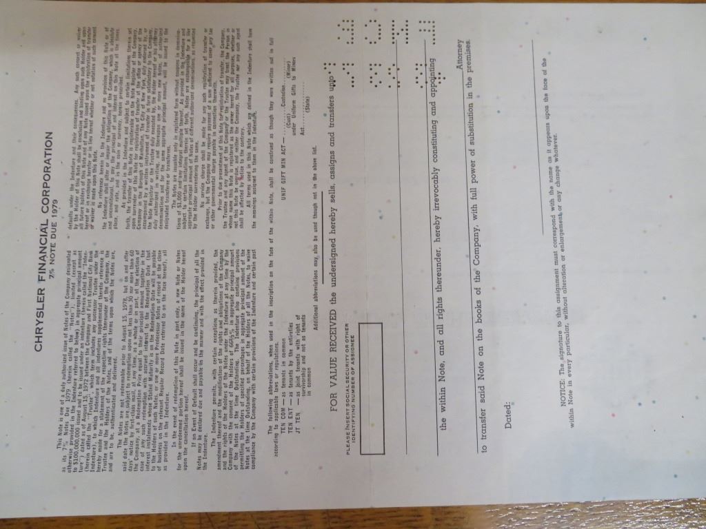 Chrysler Financial Stock Certificate