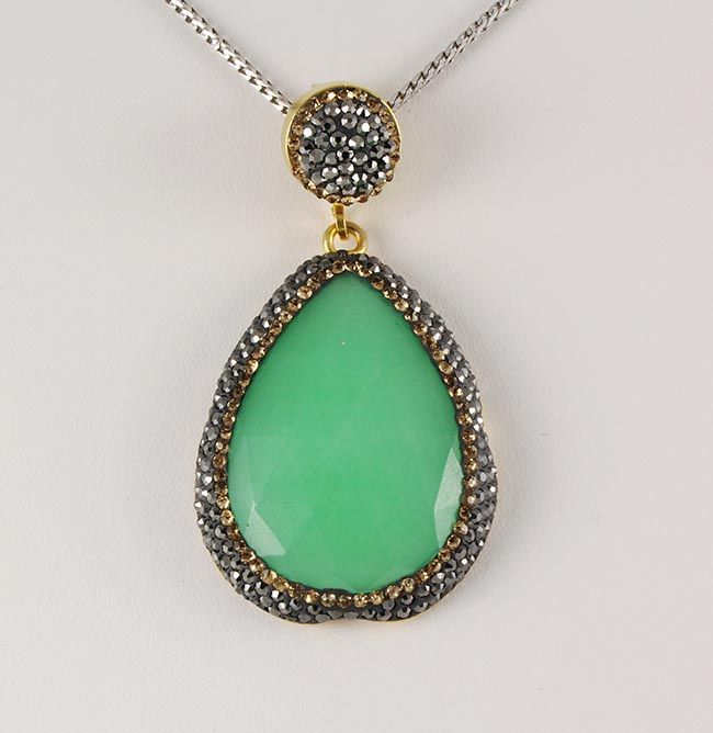 Chrysoprase Natural Stone Victorian Design Pendant **|**|** 16.56g Chrysoprase Natural Stone Drop Pendant in Victorian Design w/ CZ diamonds; 925 stamp gold plated ; MSRP: $100