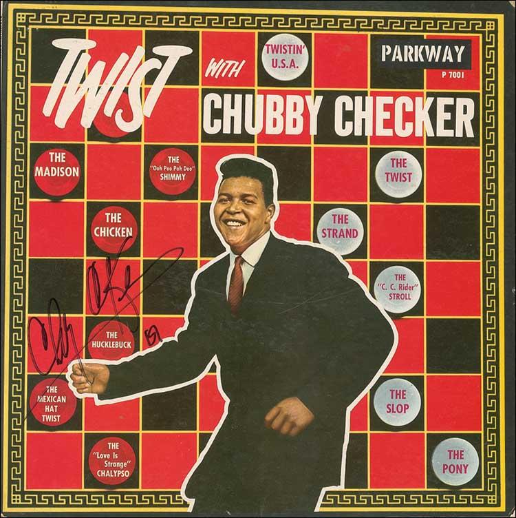Twist with Chubby Checker album signed on the front cover in black felt tip. In fine condition, with some scattered light edge wear, and foxing to back cover. The record is included. RRAuction COA.