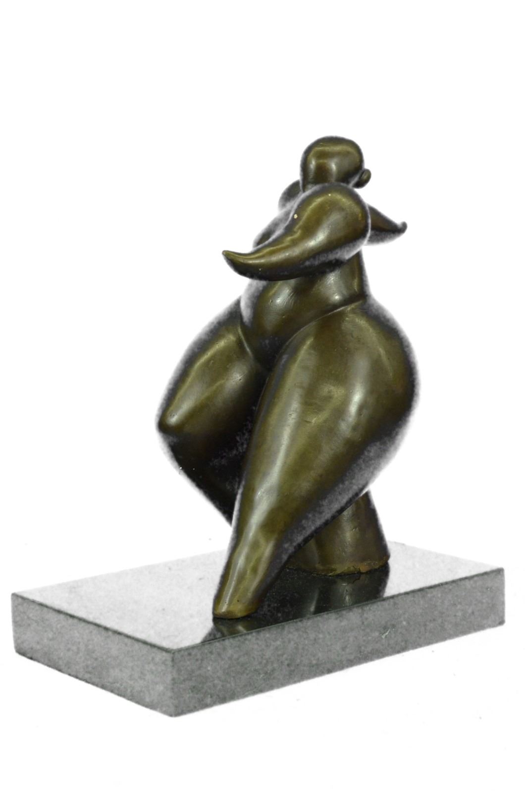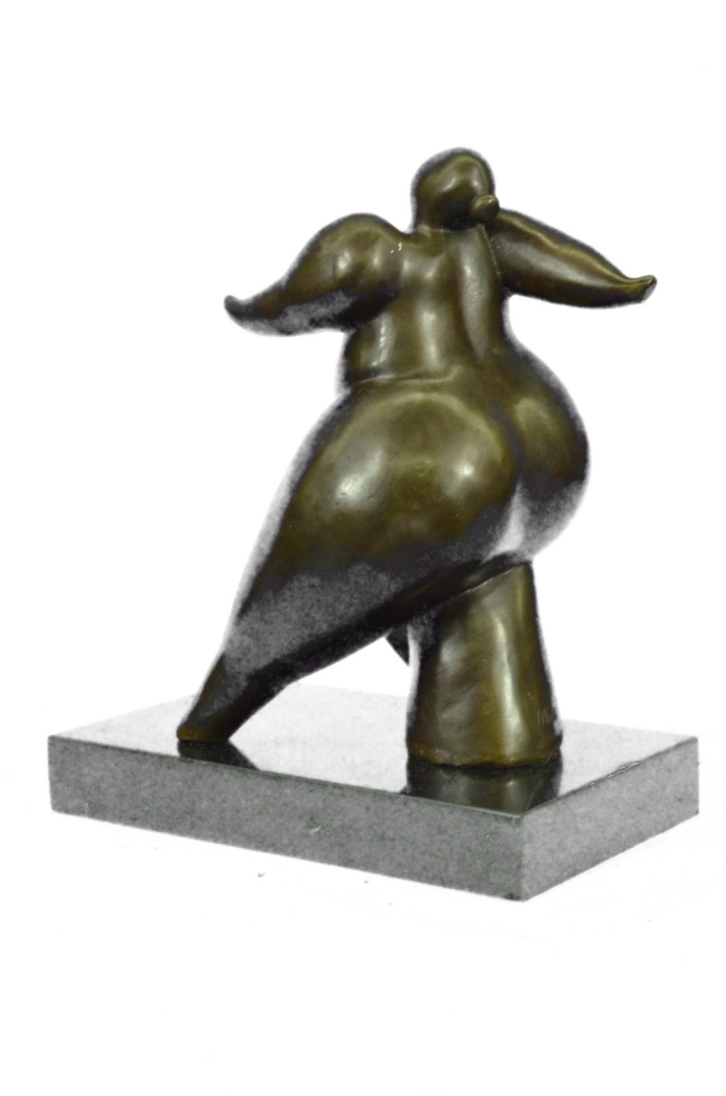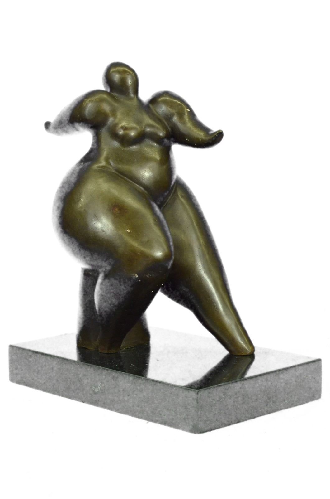 The curvy nude woman bends her knee to make her next move in her complex dance. The composition recalls the Classical sense yet adopts a modern abstract flair that gives her body an added emphasis on her curve gaseousness. She seems to coyly look up as if blushing due to the gushing admiration she gets from the beholder witnessing her body. The bronze sculpture was captured using the ancient method of lostwax casting and finished with a brown patina stain for preservation. She is mounted upon a black marble base. Bronze Dimensions with Marble Base: Height 10 X Width 9 inches. Weight: 11 LBS. Inventory: 51XF0134515