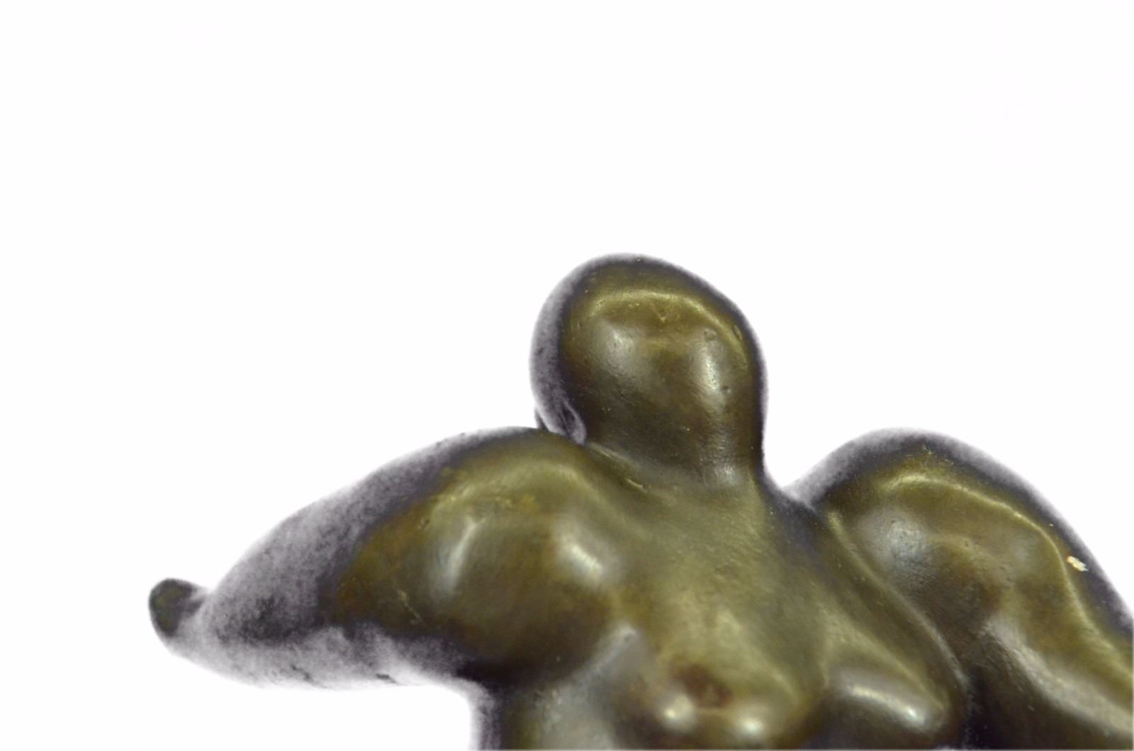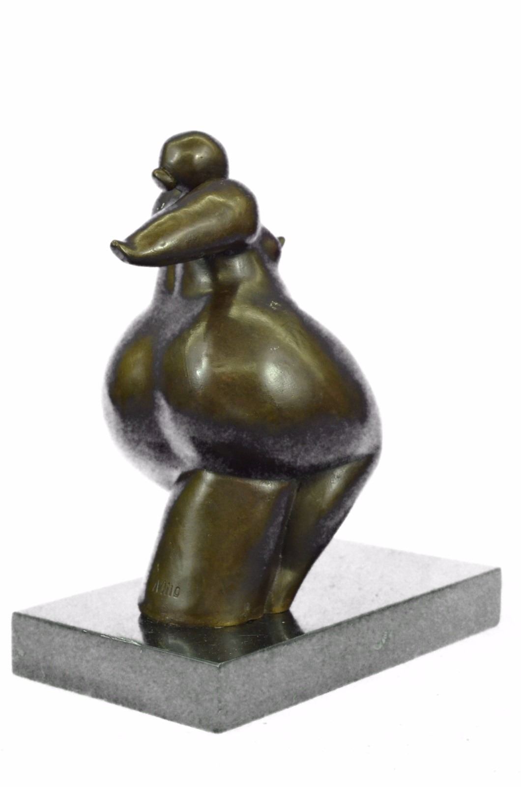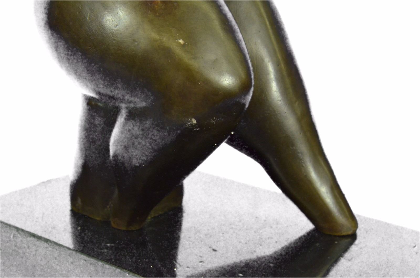 The curvy nude woman bends her knee to make her next move in her complex dance. The composition recalls the Classical sense yet adopts a modern abstract flair that gives her body an added emphasis on her curve gaseousness. She seems to coyly look up as if blushing due to the gushing admiration she gets from the beholder witnessing her body. The bronze sculpture was captured using the ancient method of lostwax casting and finished with a brown patina stain for preservation. She is mounted upon a black marble base. Bronze Dimensions with Marble Base: Height 10 X Width 9 inches. Weight: 11 LBS. Inventory: 51XF0134515