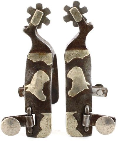 single mounted, marked on 1 1/8" heel bands, 1 3/4" shanks, 1" rowels. Est. 500-650