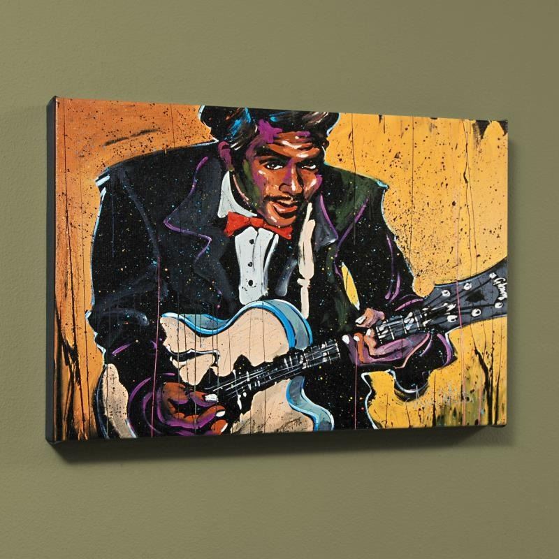 Combining his passions for music and art, David Garibaldi creates stunning visual poetry. "Chuck Berry (Chuck)" is a limited edition giclee on stretched canvas, numbered and bearing the artist's authorized signature. This piece comes gallery wrapped. Includes Letter of Authenticity. Measures approx. 48" x 60" (image). Reference #: 237397.