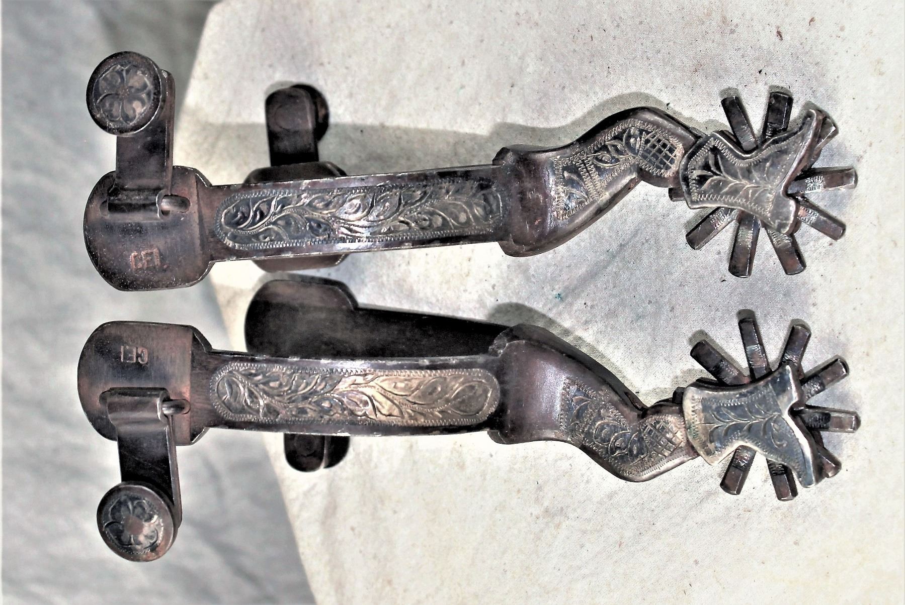 Highly sought after contemporary lady leg spurs, single inlaid with intricately engraved silver.