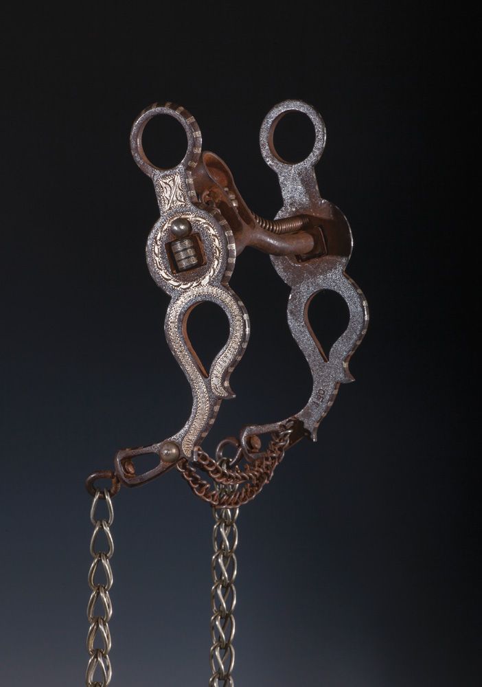 Chuck Irwin Snake Bit. Chuck Irwin (b. 1924) silver inlaid, loose jaw California snake pattern bit with Desuenado mouth and double clobber chains. Excellent condition, circa 1970s. . PROVENANCE: Dick Powell Collection, Casa Grande, Arizona.