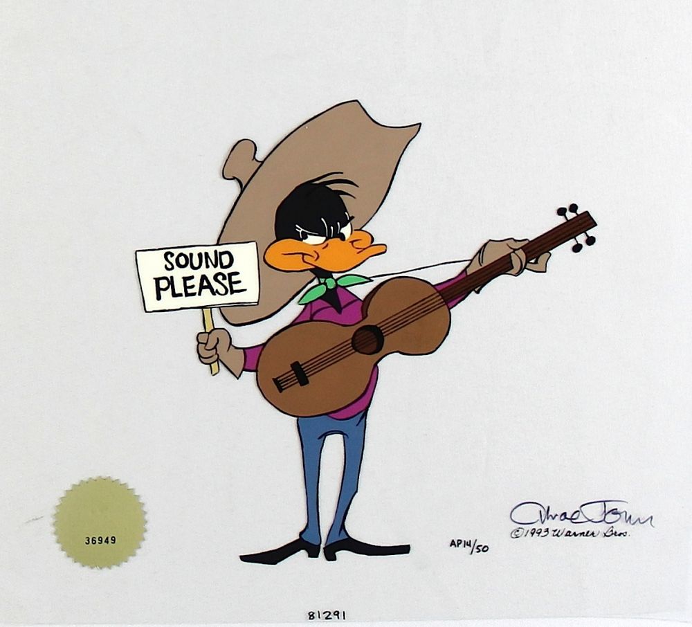 Hand-painted animation cel measures approximately 12.5" x 10.5" in size and is part of a sold out edition. Retail Price $700. The piece is hand-signed in the lower right corner by legendary animator Chuck Jones (D 2002). Hand-numbered AP #14/50.