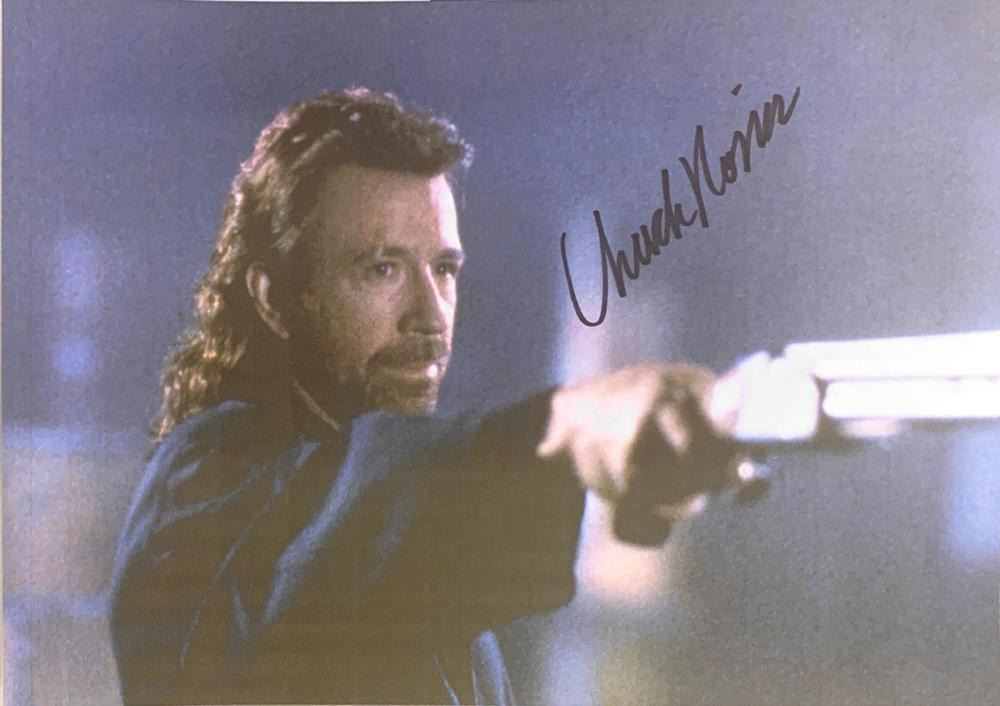 Chuck Norris facsimile signed photo. 8x10 inches. This item is a reprint of an original autograph