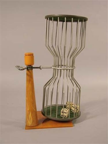 Chuck-O-Luck buckskin color swirl Bakelite. 12" tall. Very good cond.