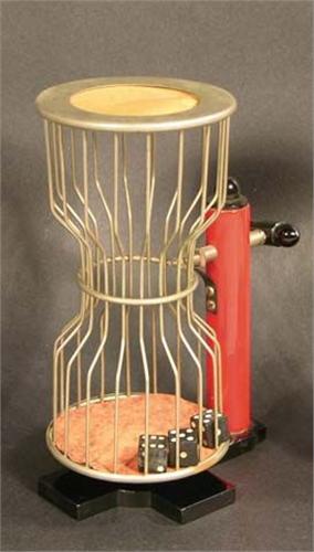 Chuck-O-Luck buckskin & red color Bakelite. 10.5" tall. Ex. cond.