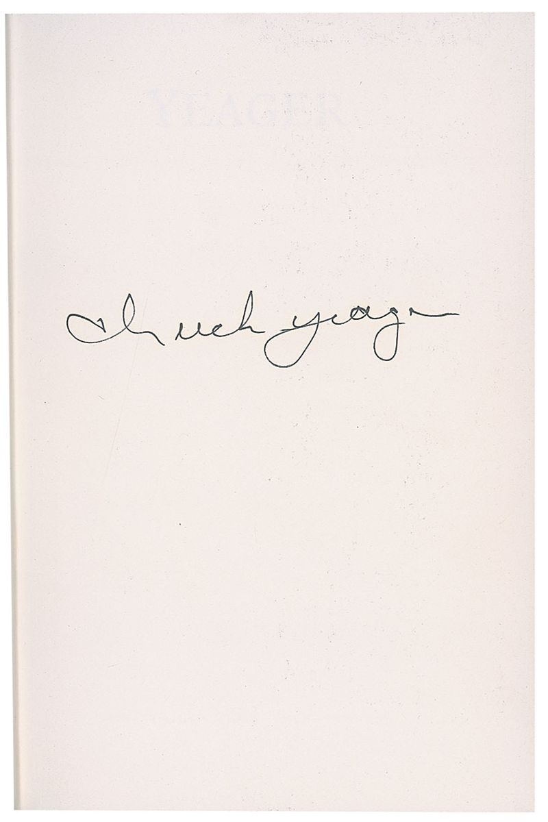 Signed book: Yeager. London: Century, 1985. Hardcover with dust jacket, 6.25 x 9.5, 342 pages. Signed in black ink on the first free end page. In fine condition.