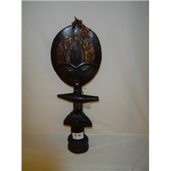 Hand carved African Paschal Mask, free standing, 13.5"H X 4.5"W. Rich brown tones patina.