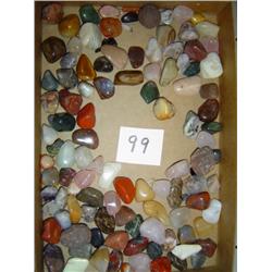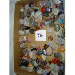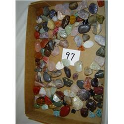101 plus pieces of polished semi-precious stones, good quality, med to large size, some geodes, etc., approx. 2.5 lbs.