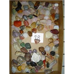 102 plus pieces of polished semi-precious stones, good quality, med to large size, some geodes, etc., approx. 2.5 lbs.
