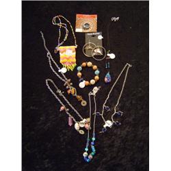Two sets Bead/Stone Necklace and Earrings, one set Chunk Stone Necklace and Bracelet, Pau shell ring, Beaded Pouch Necklace