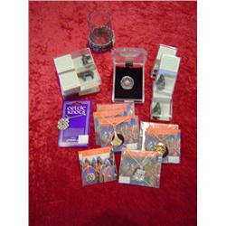 1" Celtic Knot Pendant with Pink Stone in case, 1" Celtic Pendant w/red austrian crystal and silver chain, four gold tone Viking Ship'...