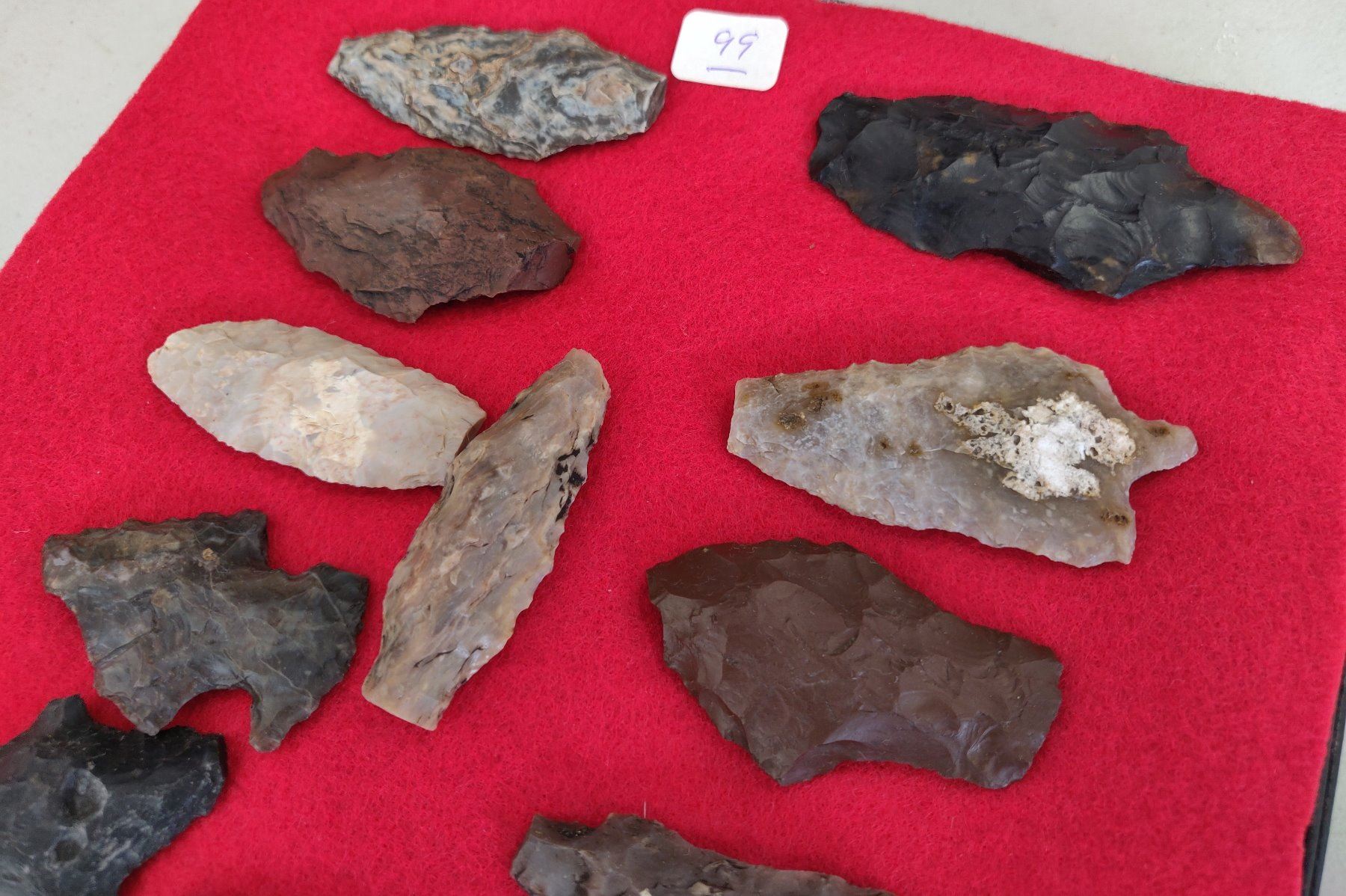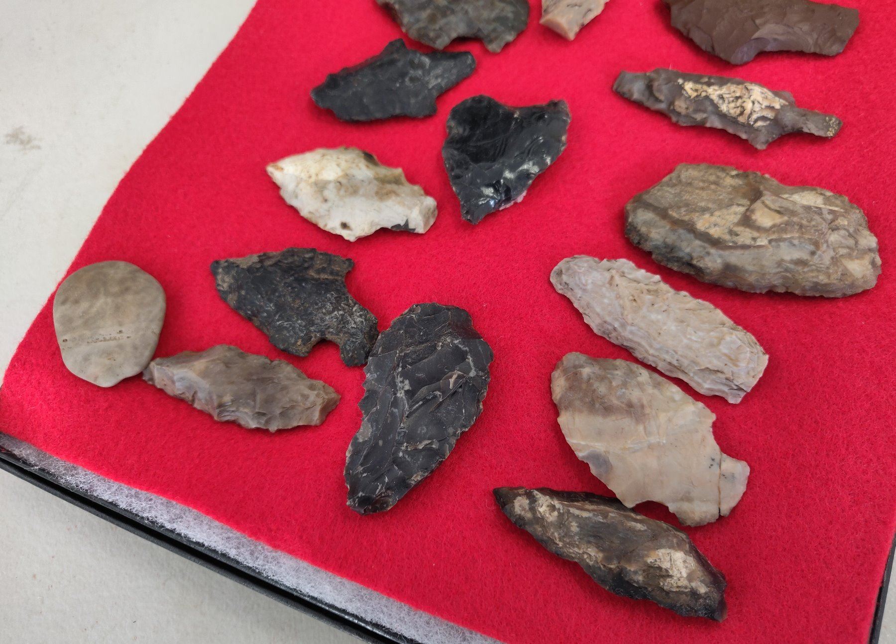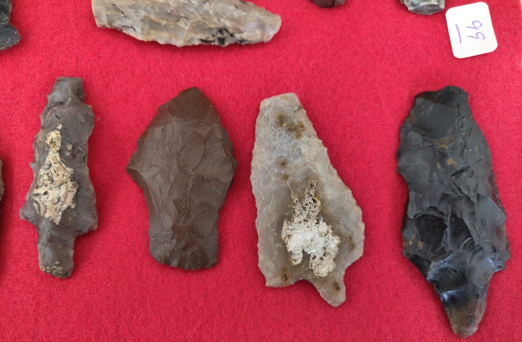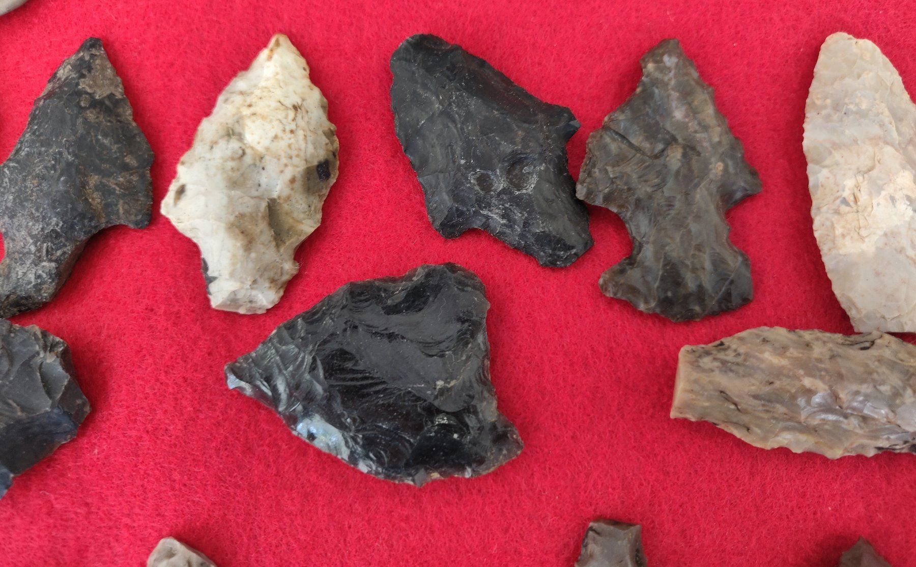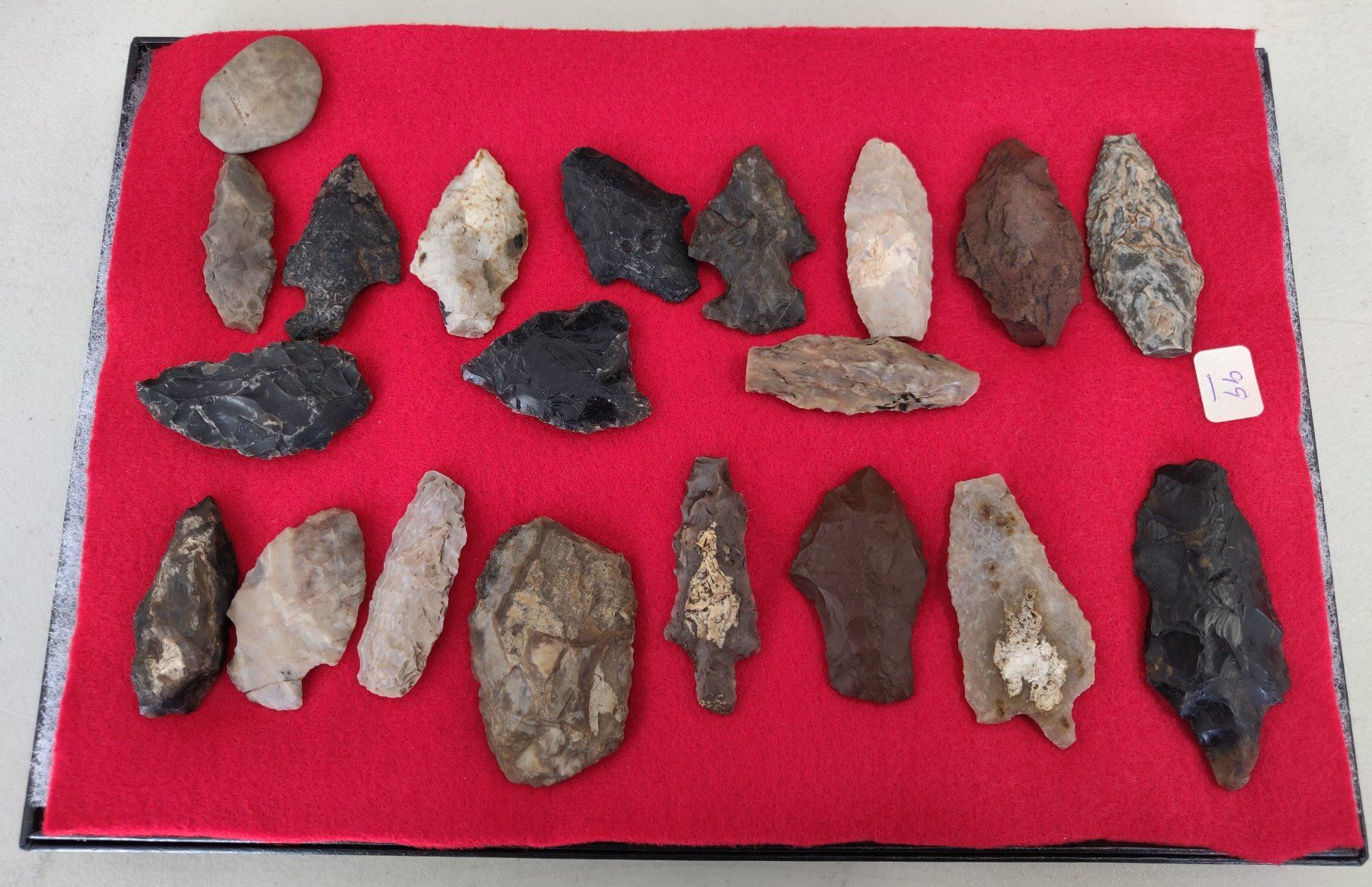 Chumash Artifact Collection, pre-historic items. Made of obsidian, flint and chert, the longest item measures 3". Santa Barbara County, California. Frame not included. Condition: As found, see images. Shipping: $24.50 w/insurance and signature.