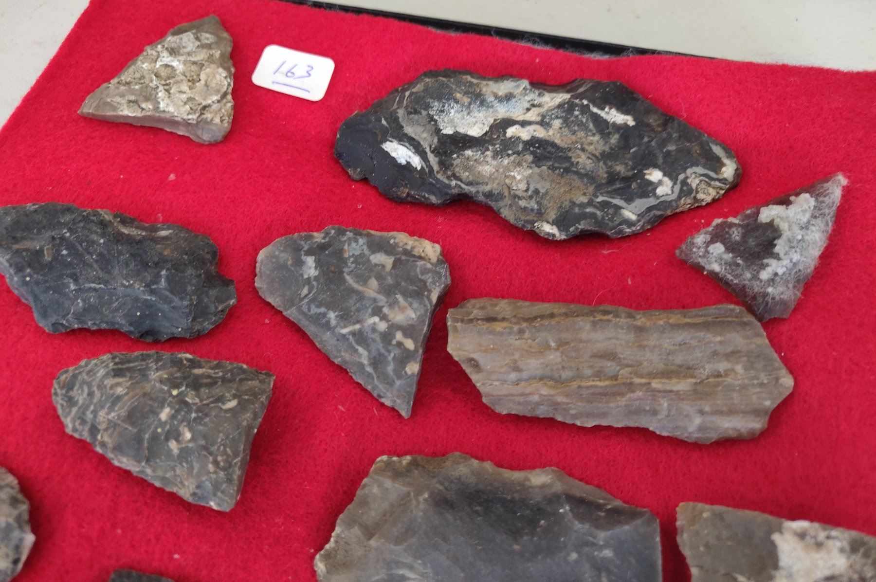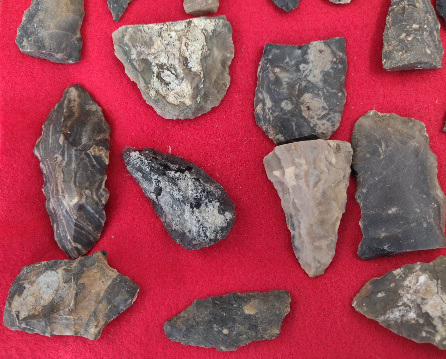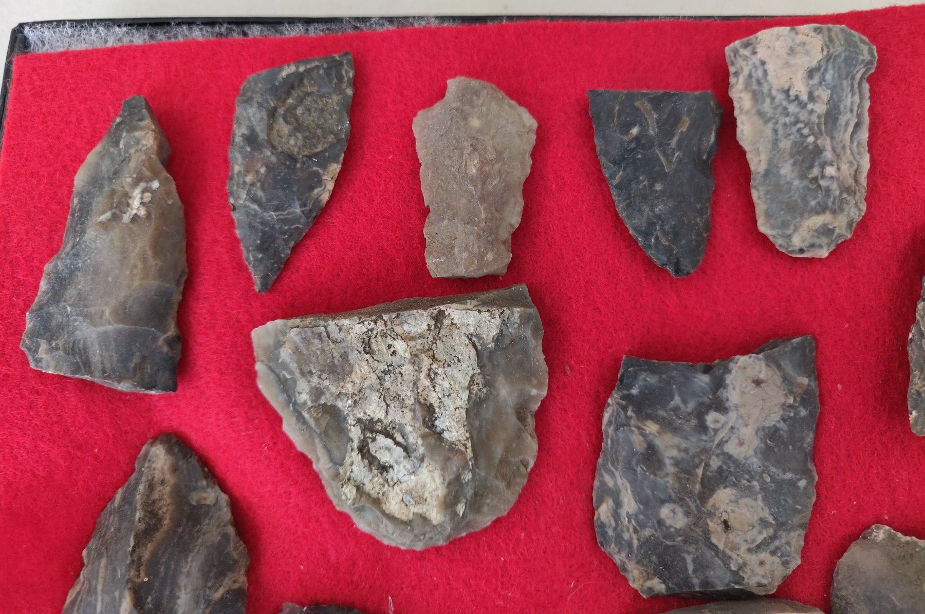 Chumash Artifact Collection, pre-historic items. Made of obsidian, flint and chert, the longest item measures 4". Santa Barbara County, California. Frame not included. Condition: As found, see images. Shipping: $30.00 w/insurance and signature.