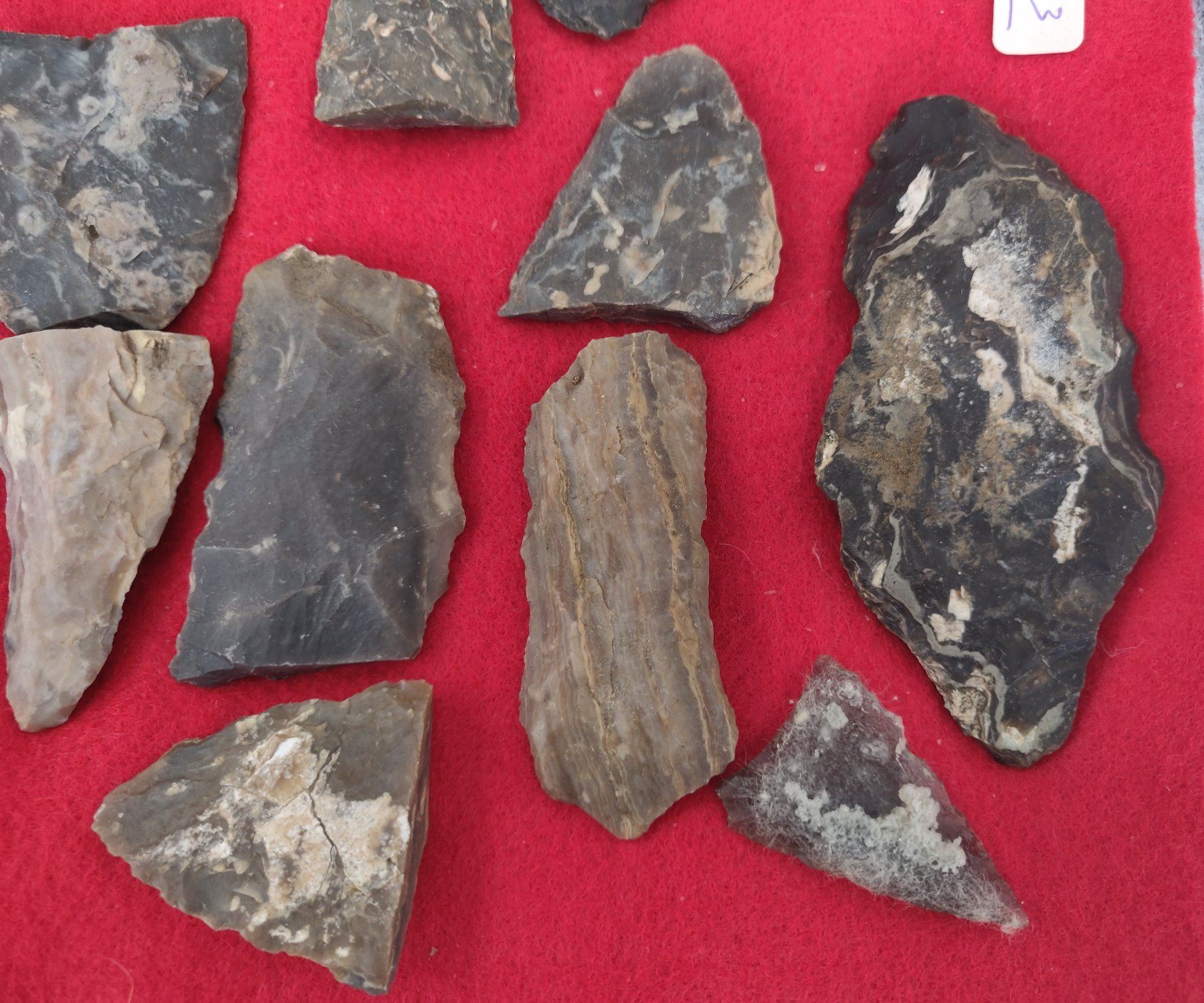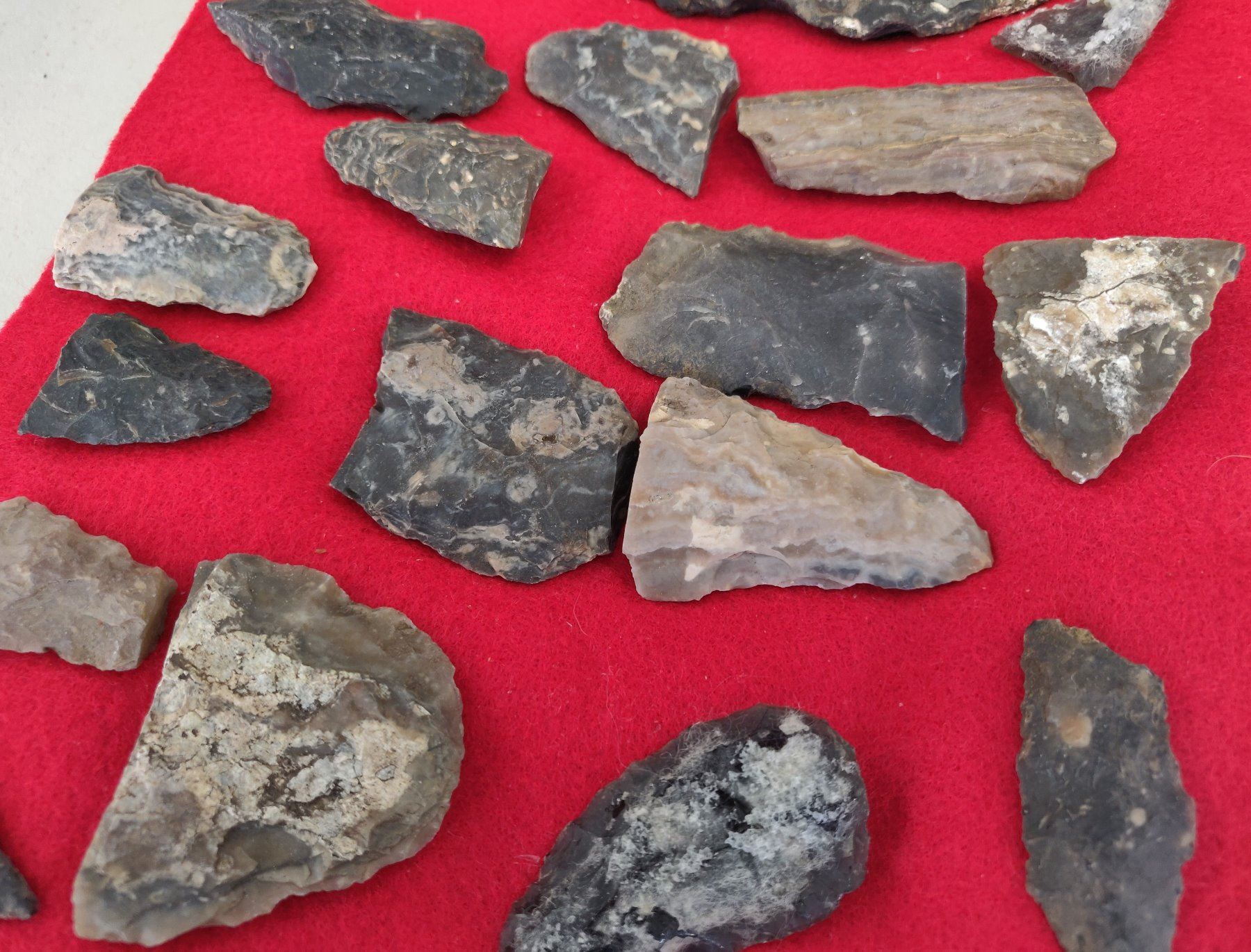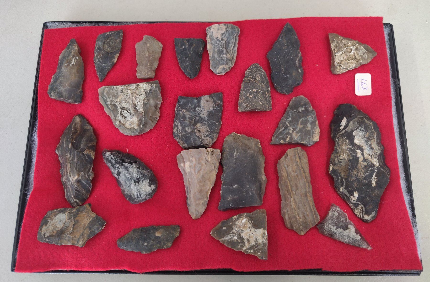 Chumash Artifact Collection, pre-historic items. Made of obsidian, flint and chert, the longest item measures 4". Santa Barbara County, California. Frame not included. Condition: As found, see images. Shipping: $30.00 w/insurance and signature.