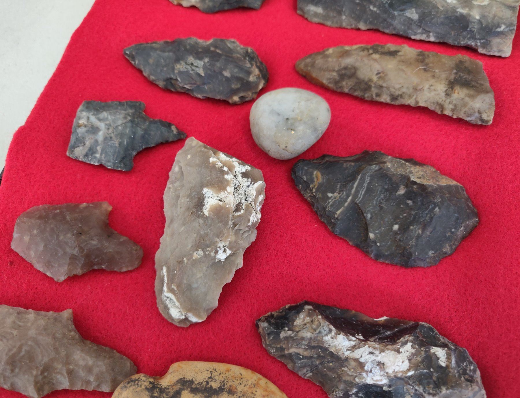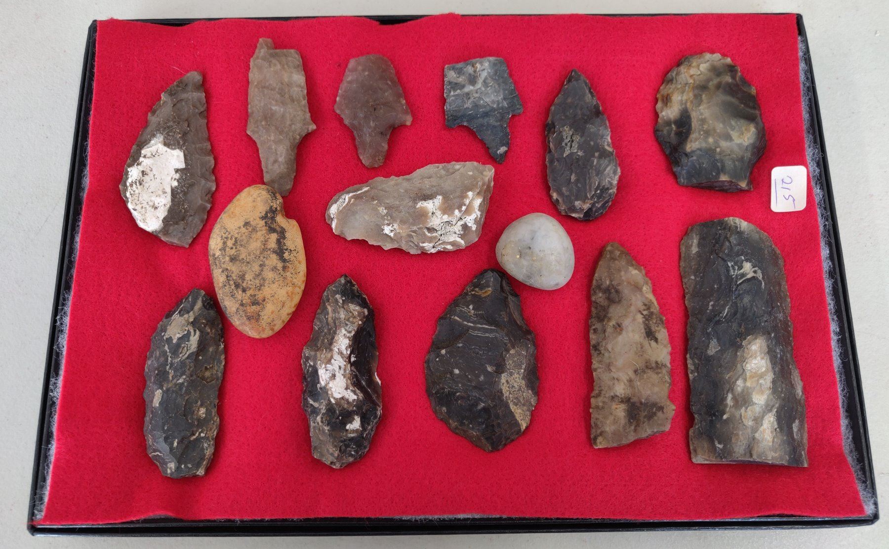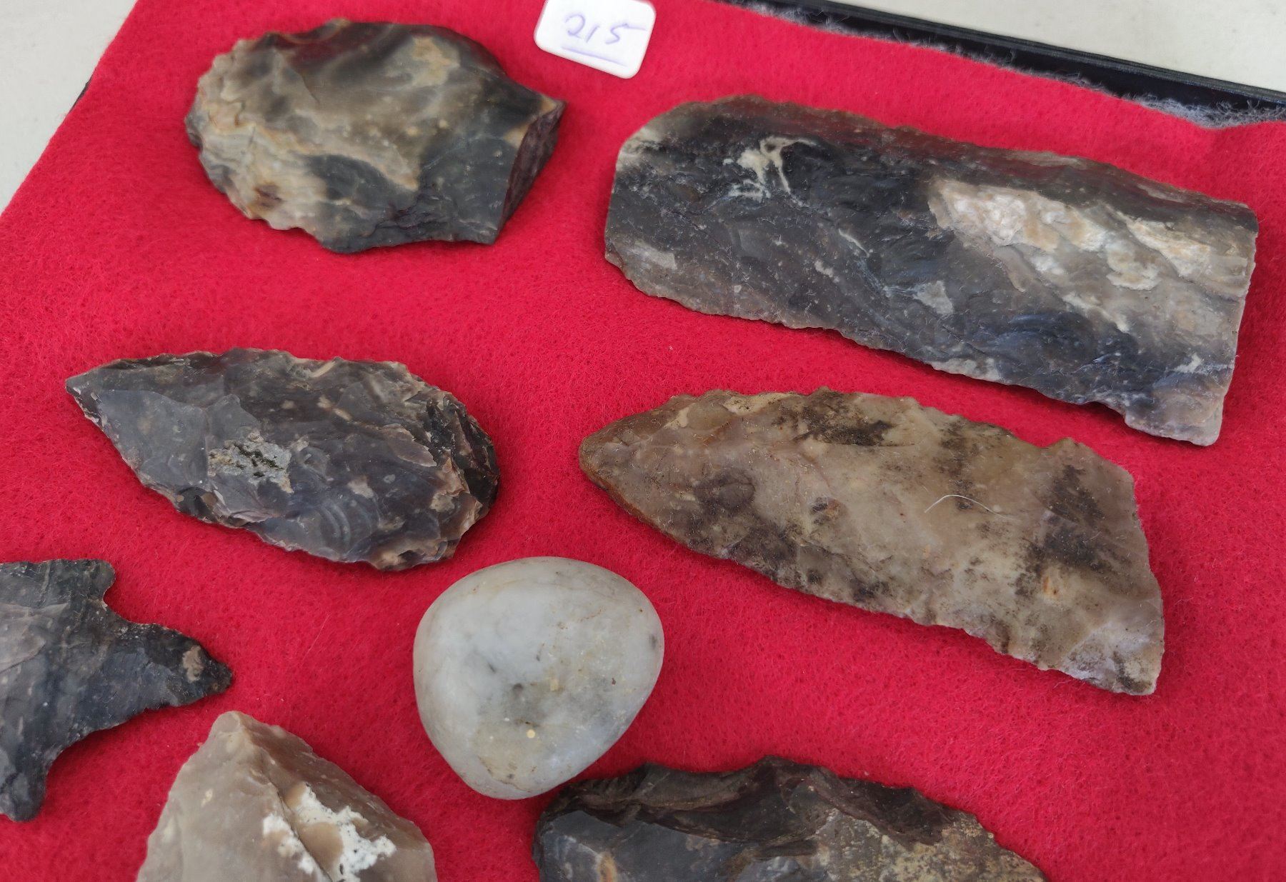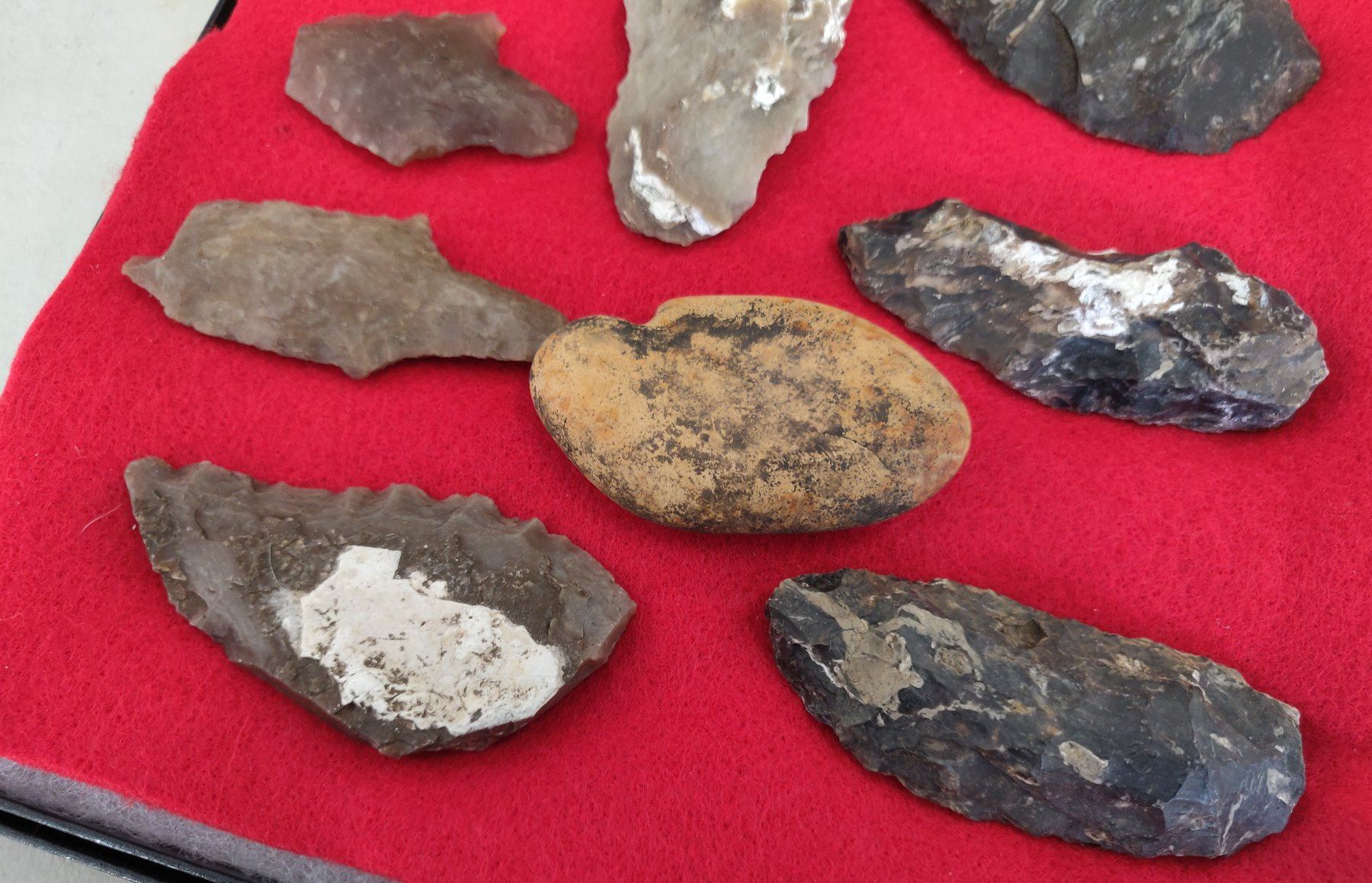 Chumash Artifact Collection, pre-historic items. Made of obsidian, flint and chert, the longest item measures 4". Santa Barbara County, California. Frame not included. Condition: As found, see images. Shipping: $26.50 w/insurance and signature.