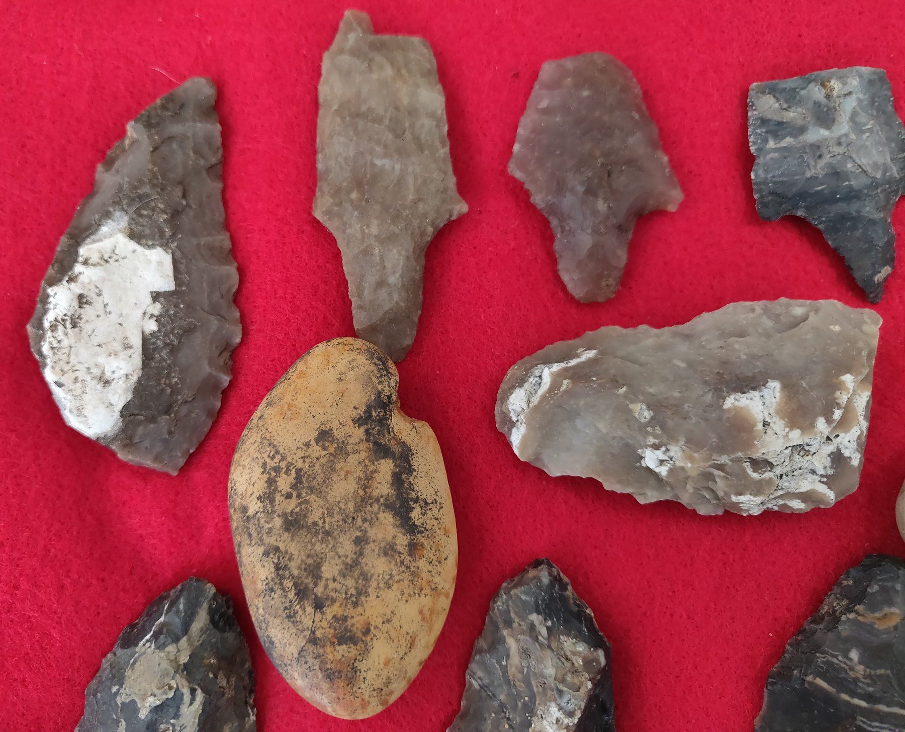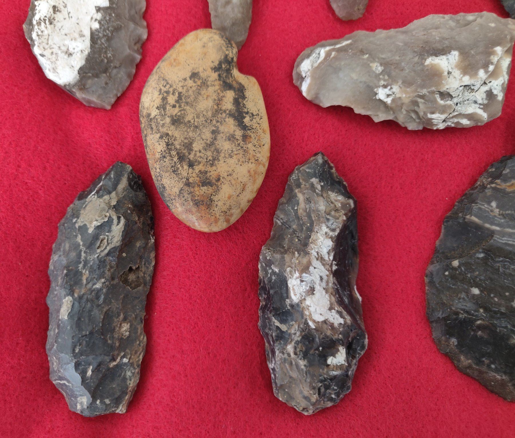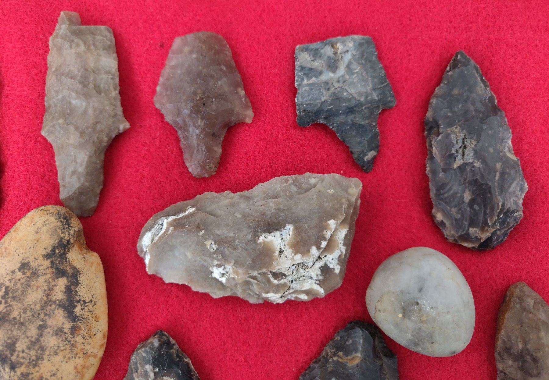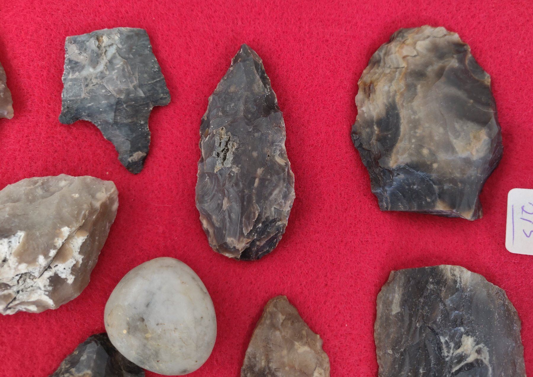 Chumash Artifact Collection, pre-historic items. Made of obsidian, flint and chert, the longest item measures 4". Santa Barbara County, California. Frame not included. Condition: As found, see images. Shipping: $26.50 w/insurance and signature.