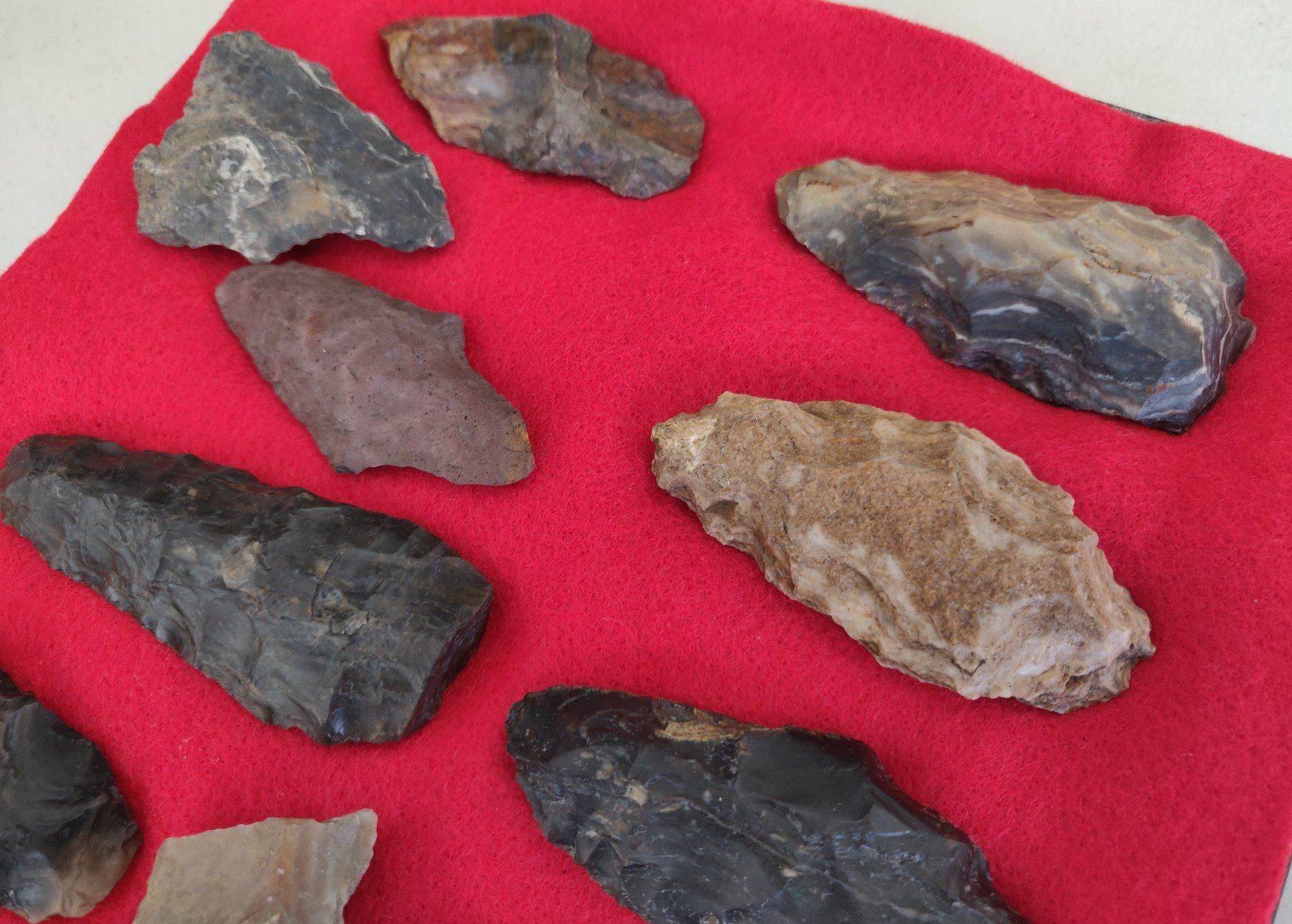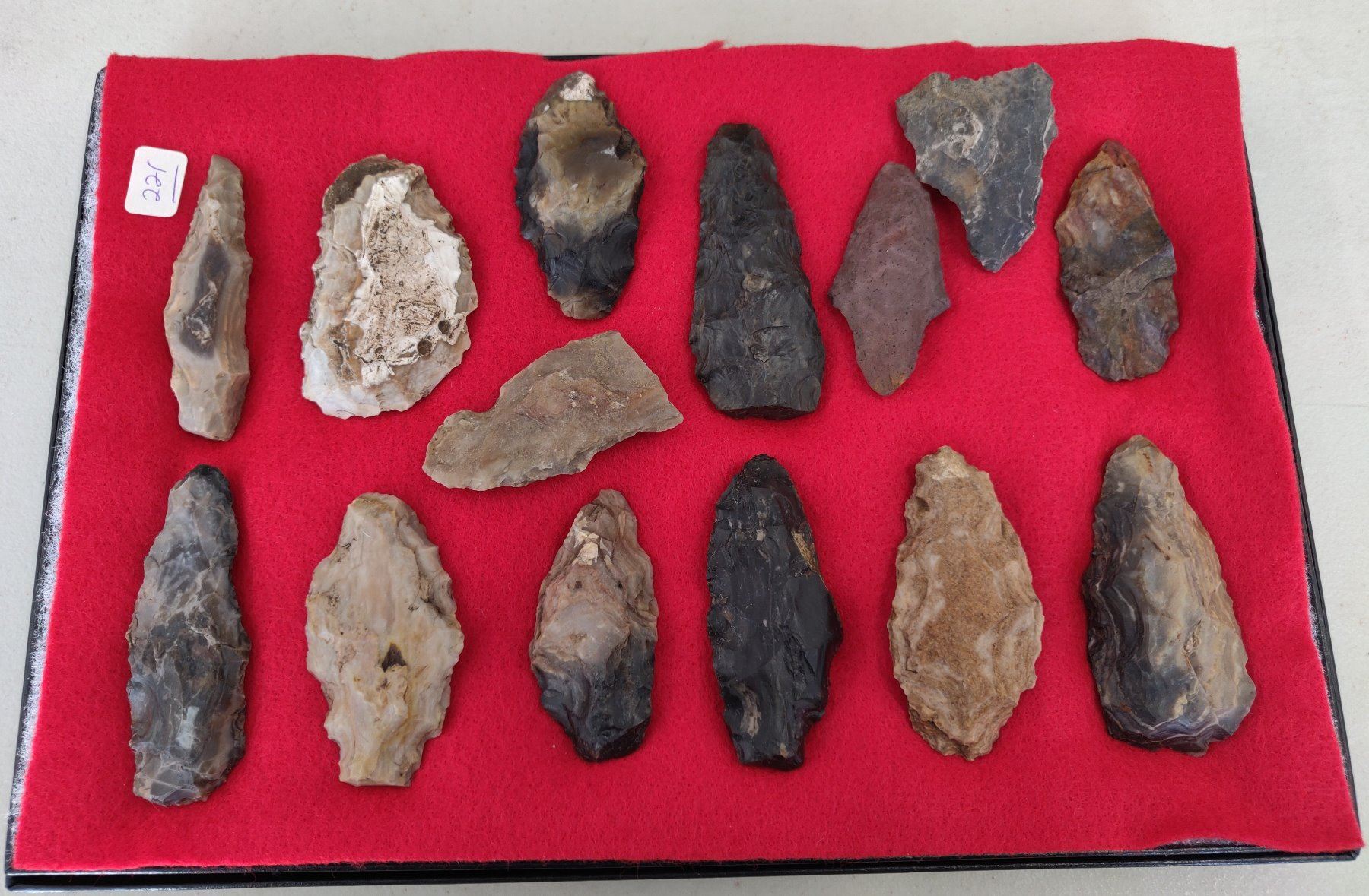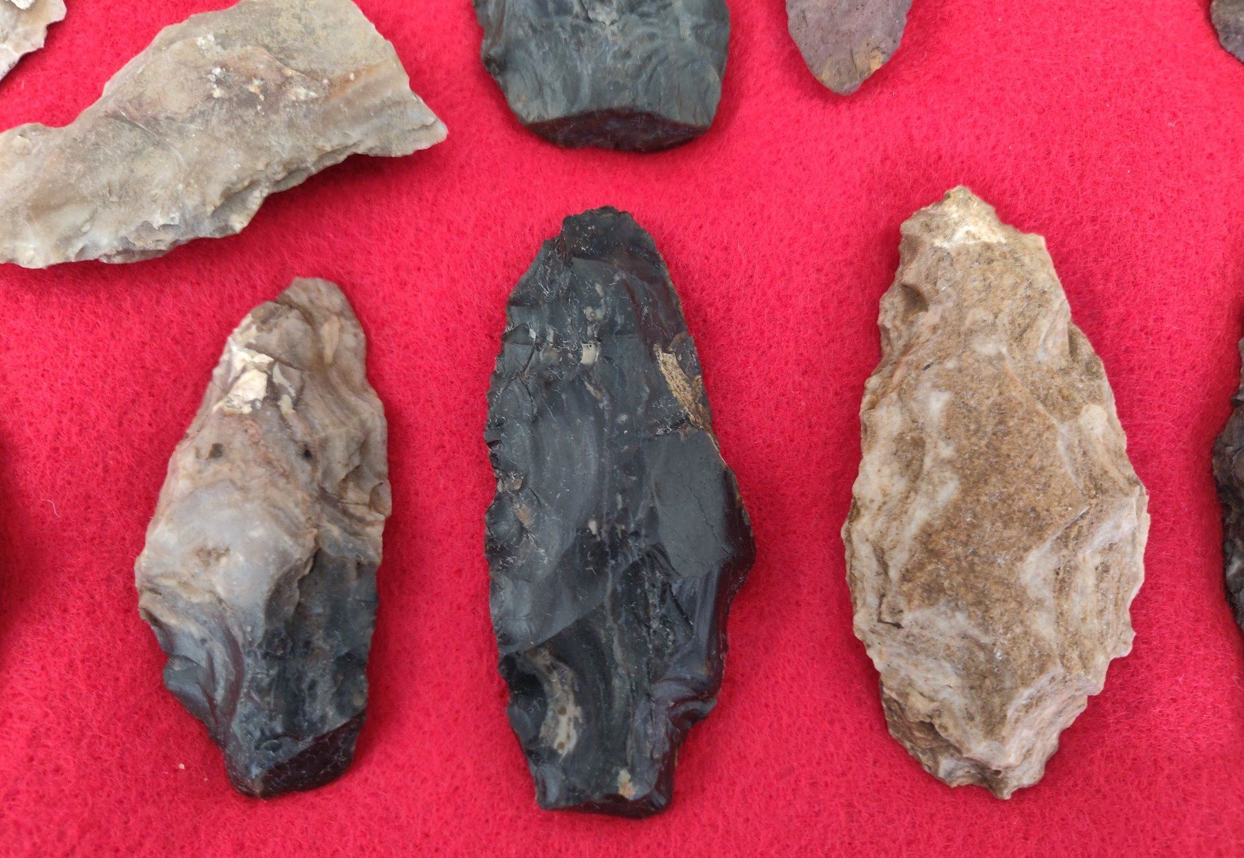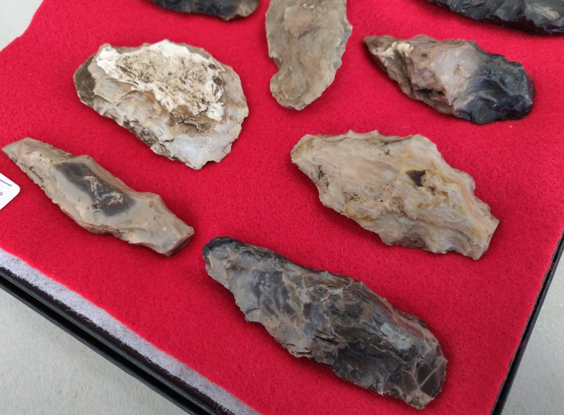 Chumash Artifact Collection, pre-historic items. Made of obsidian, flint and chert, the longest item measures 3 1/4". Santa Barbara County, California. Frame not included. Condition: As found, see images. Shipping: $26.50 w/insurance and signature.