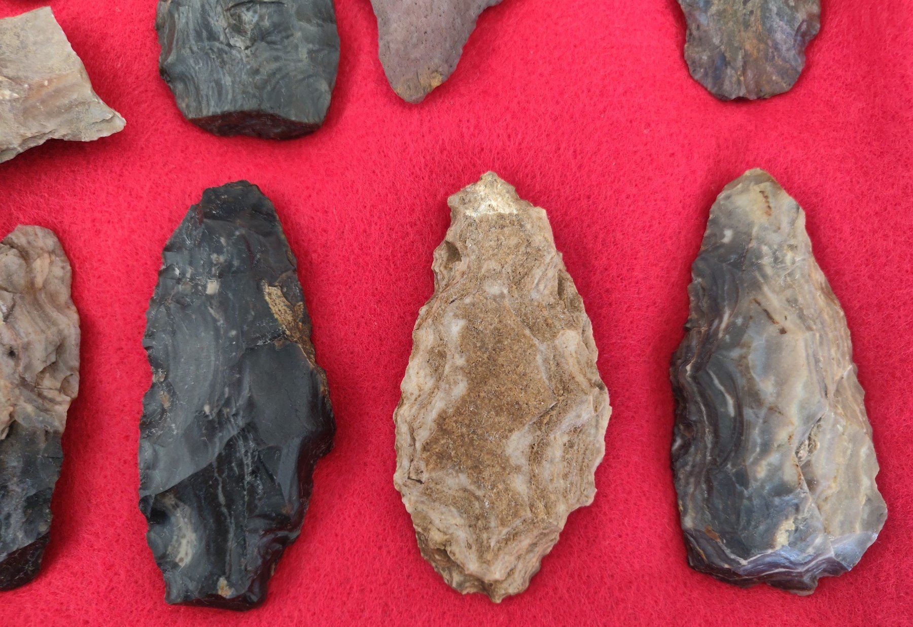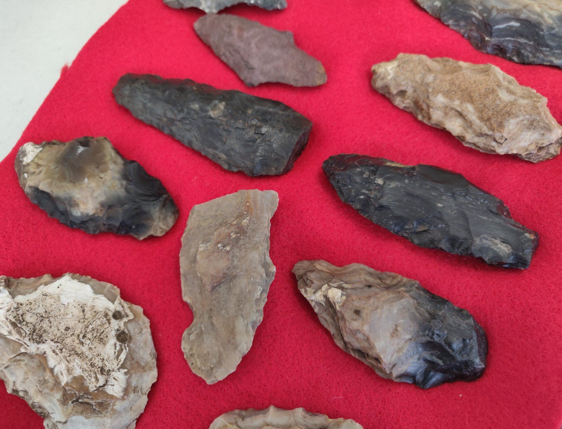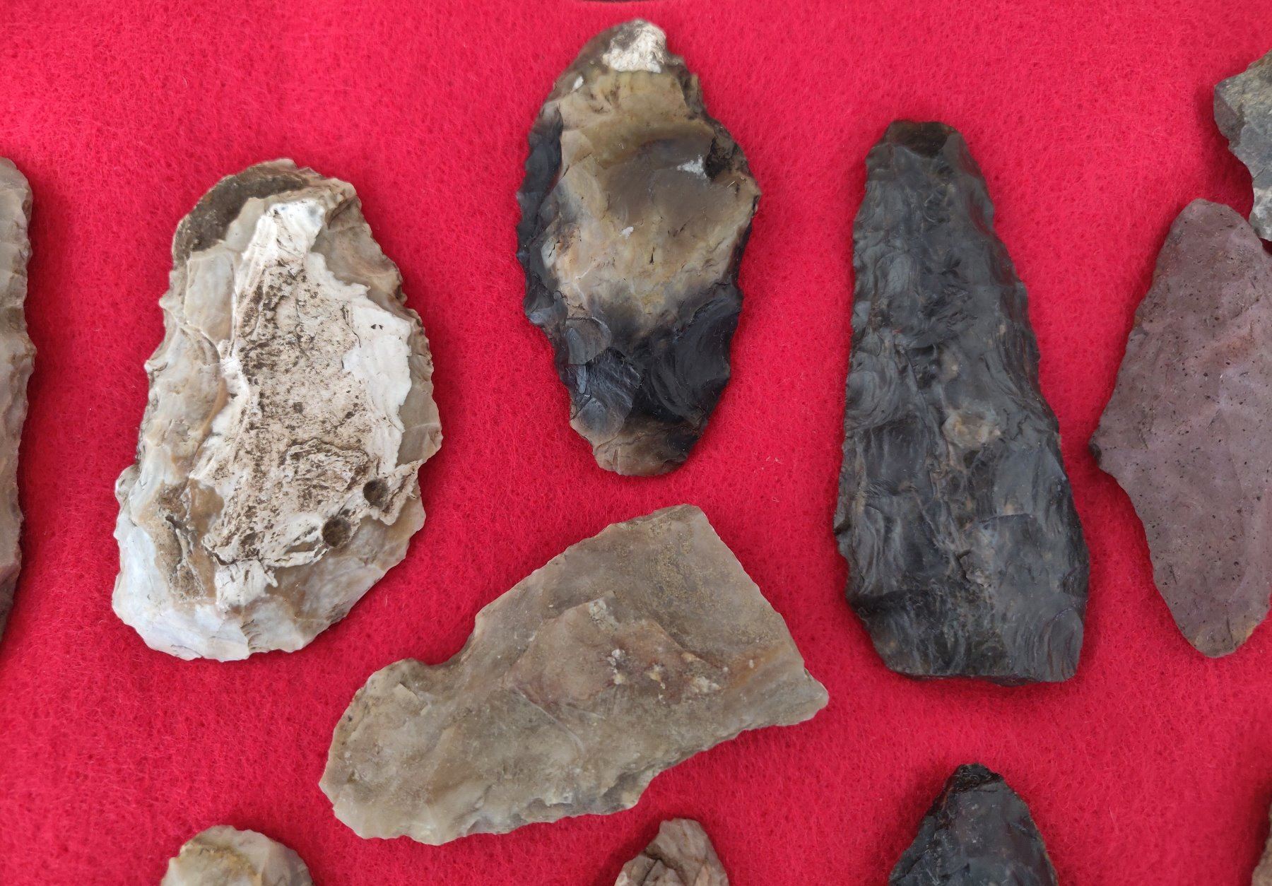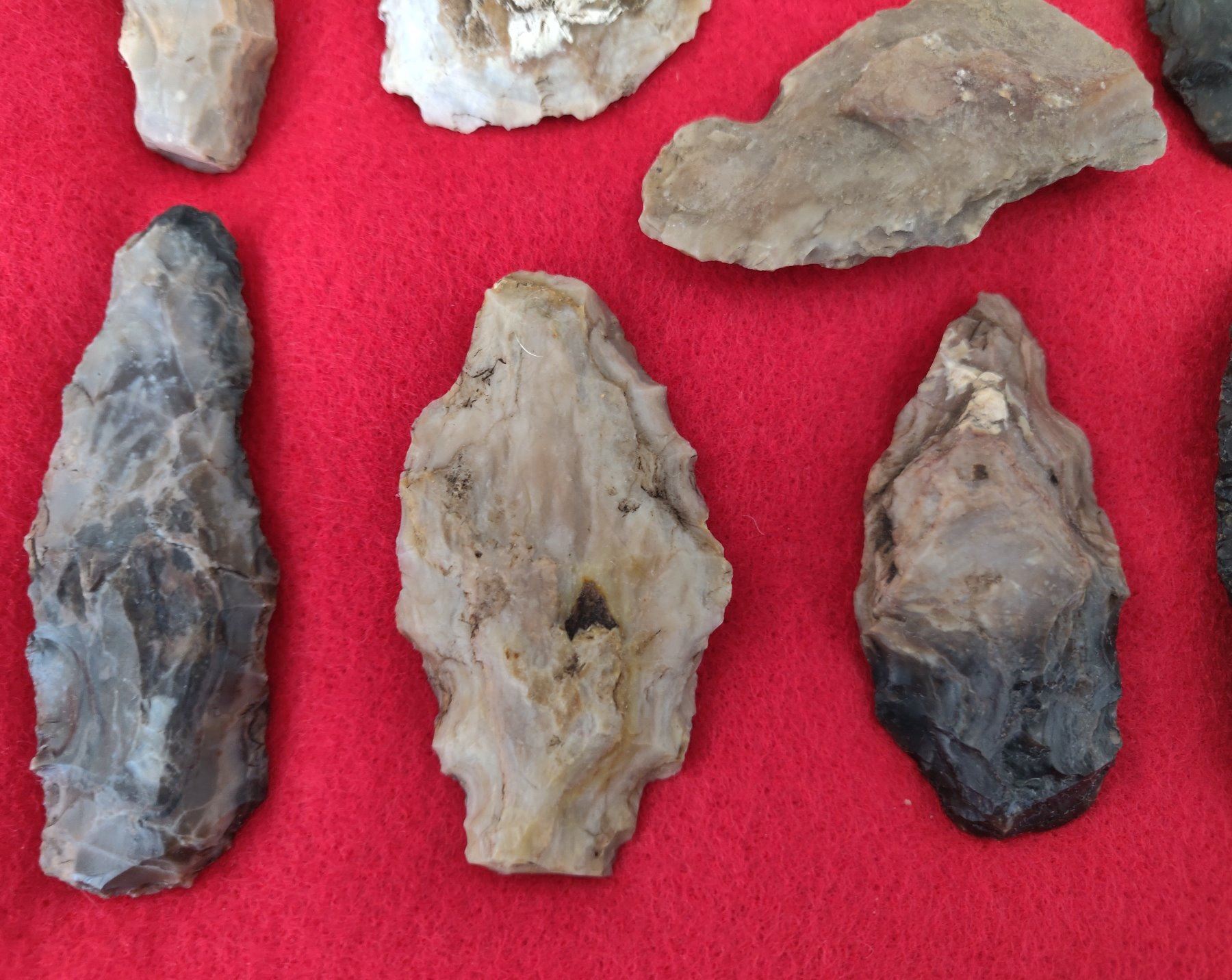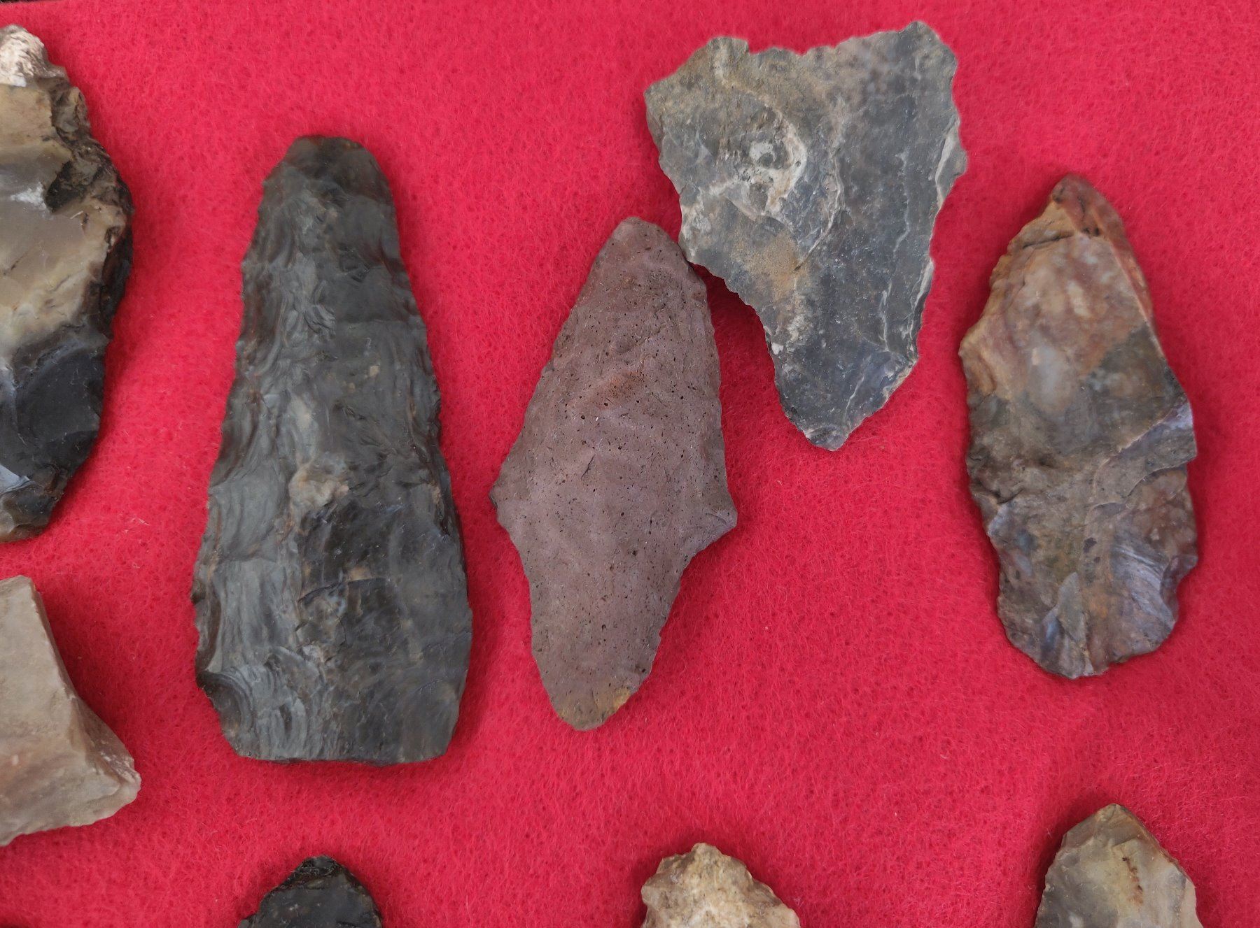 Chumash Artifact Collection, pre-historic items. Made of obsidian, flint and chert, the longest item measures 3 1/4". Santa Barbara County, California. Frame not included. Condition: As found, see images. Shipping: $26.50 w/insurance and signature.
