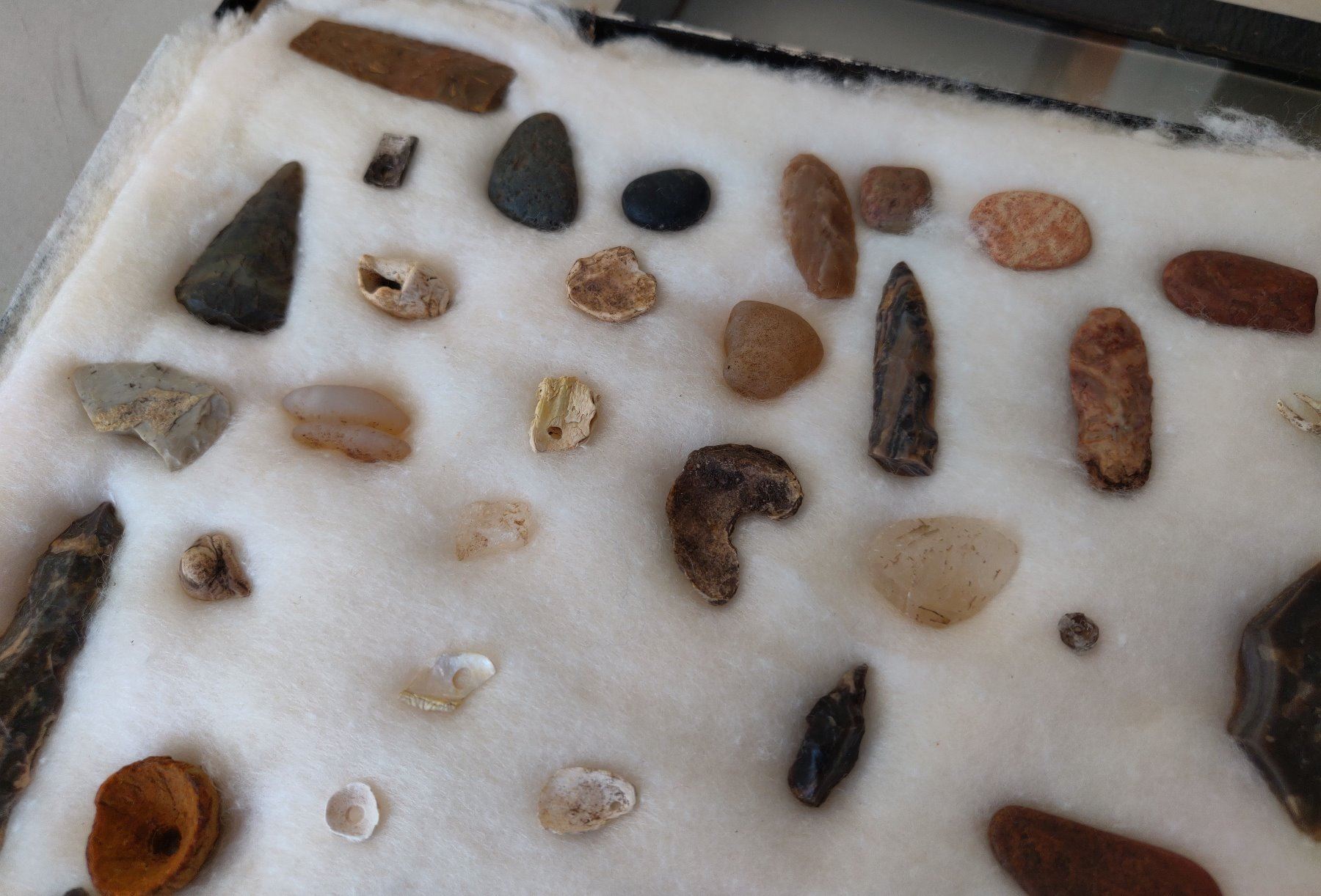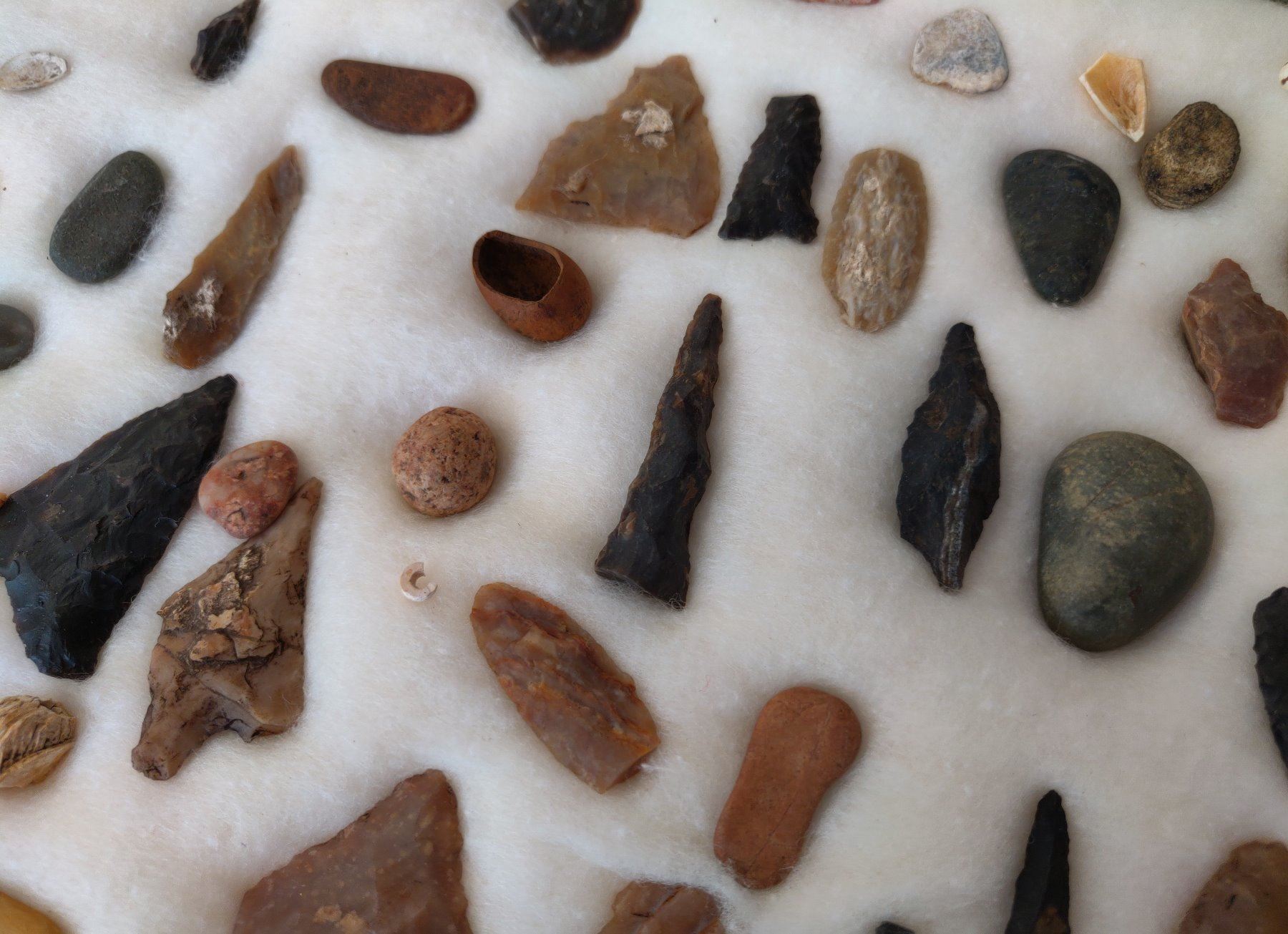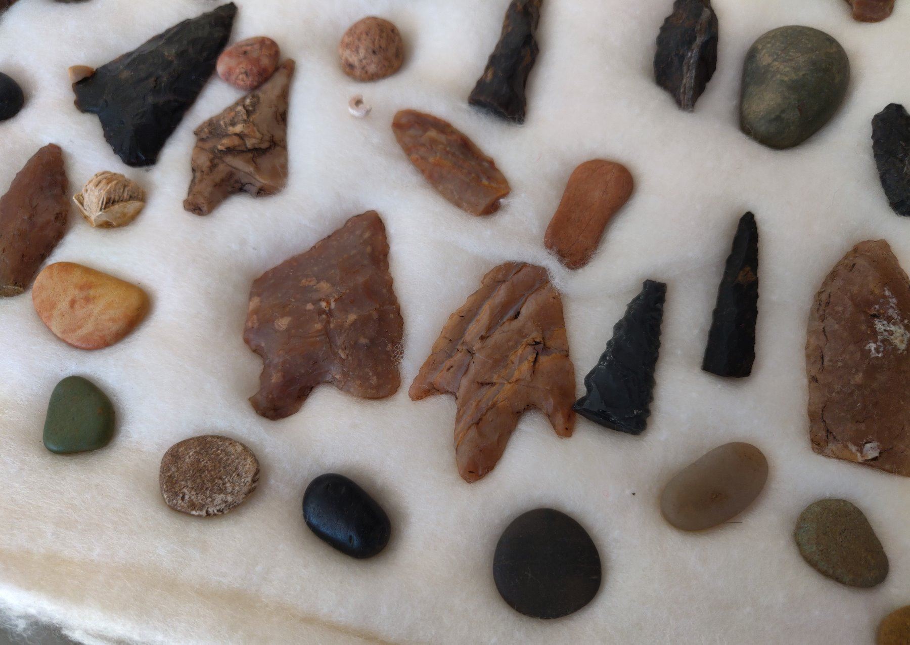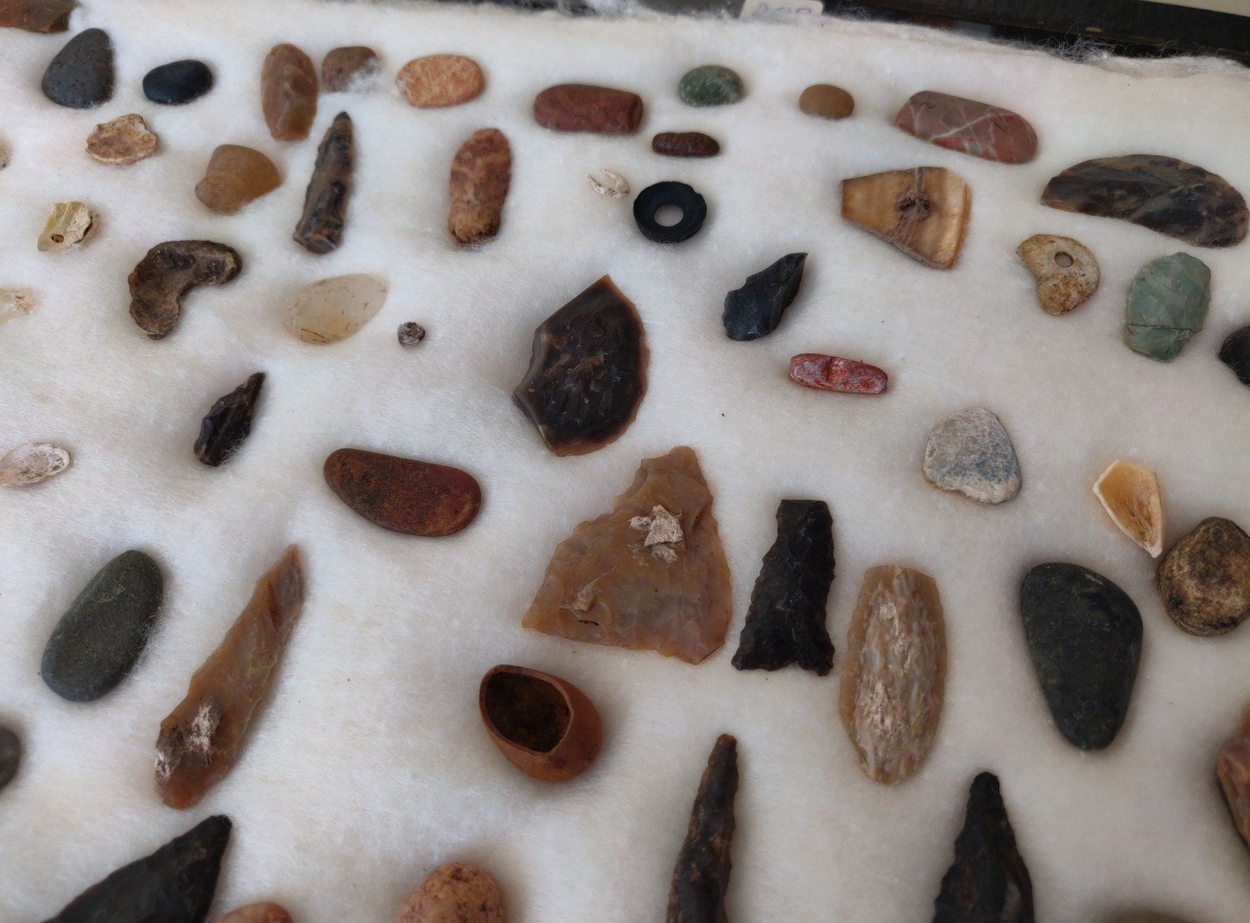 Chumash Artifact Collection, pre-historic items. Made of obsidian, flint, shell and chert, the longest item measures 2 1/2". Santa Barbara County, California. Frame not included. Condition: As found, see images. Shipping: $30.00 w/insurance and signature.