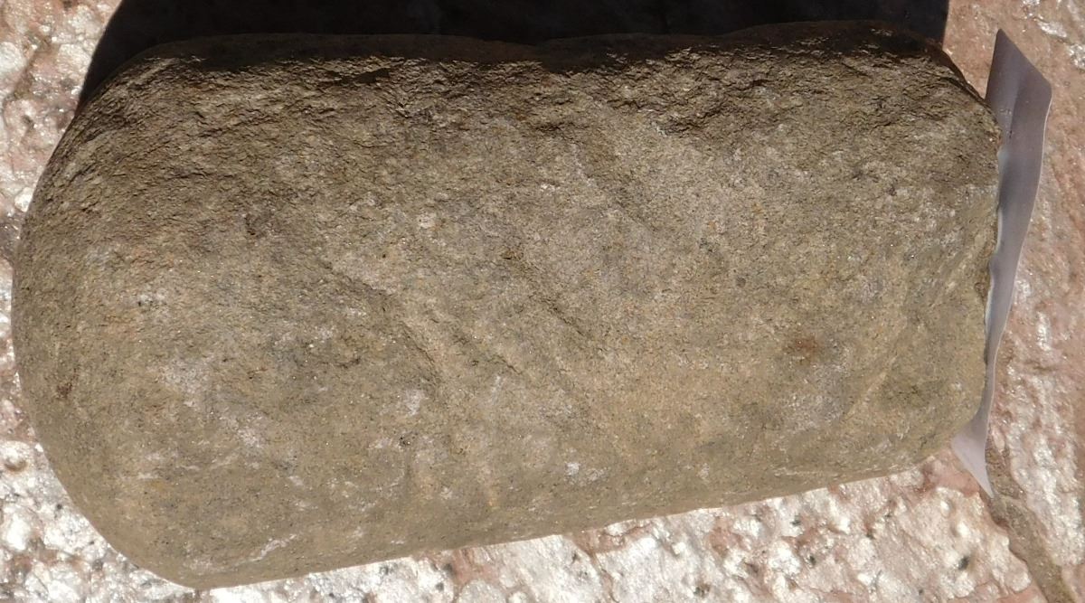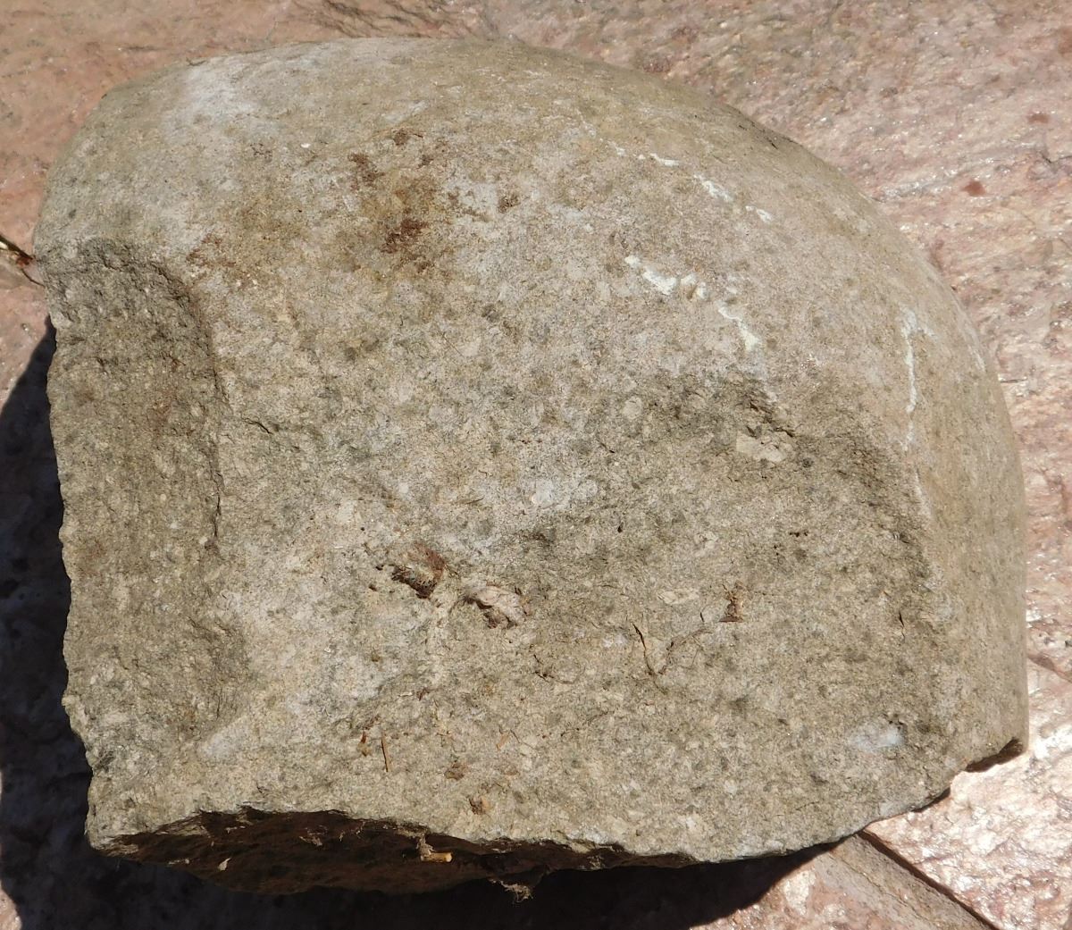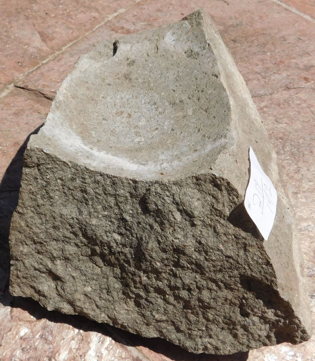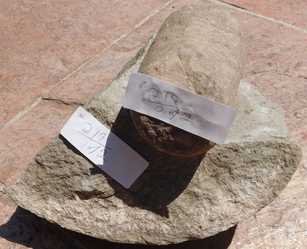 Chumash Pestle & Bowl Fragment, pre-historic item. Made of granite, the pestle measures 5" and the fragment is 9". Found in San Clemente, Calif. near the beach circa 1920s. Condition: As found, see images. Shipping: $40.00 due to weight.