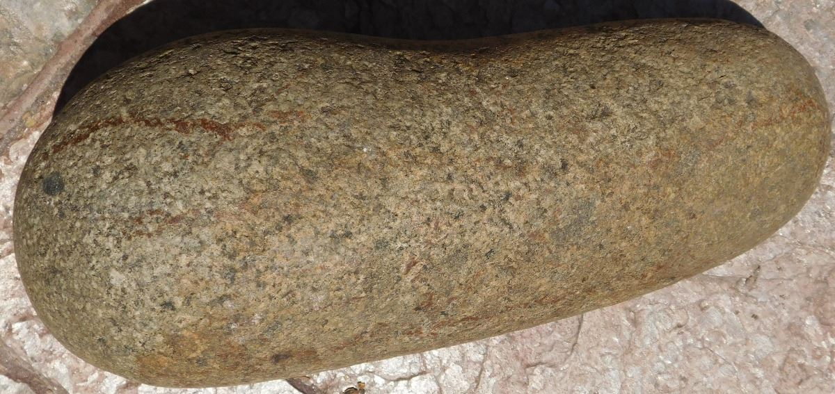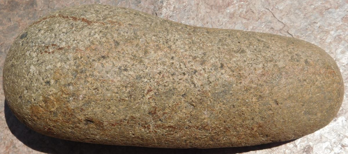 Chumash Pestle, pre-historic item. Made of granite and measuring 9" long, this item was found on the beach in the 1920s in San Clemente, Orange County, Calif. Condition: As found, see images. Shipping: $22.50.