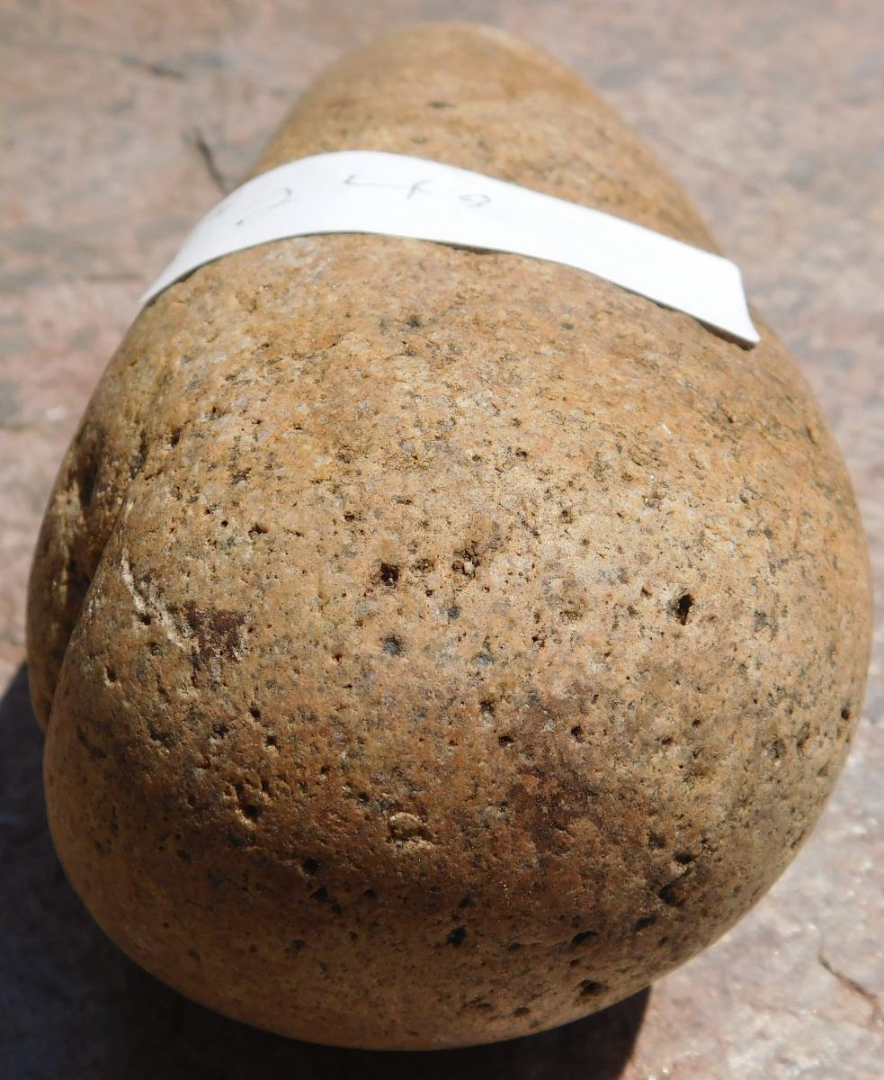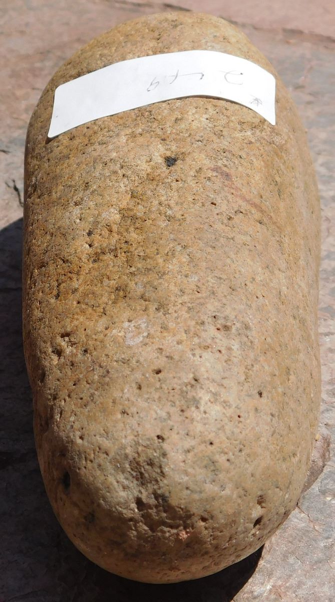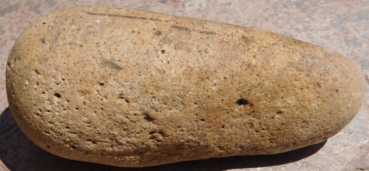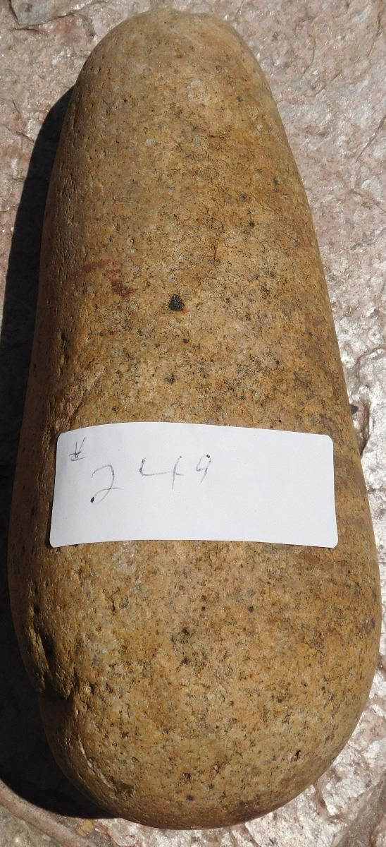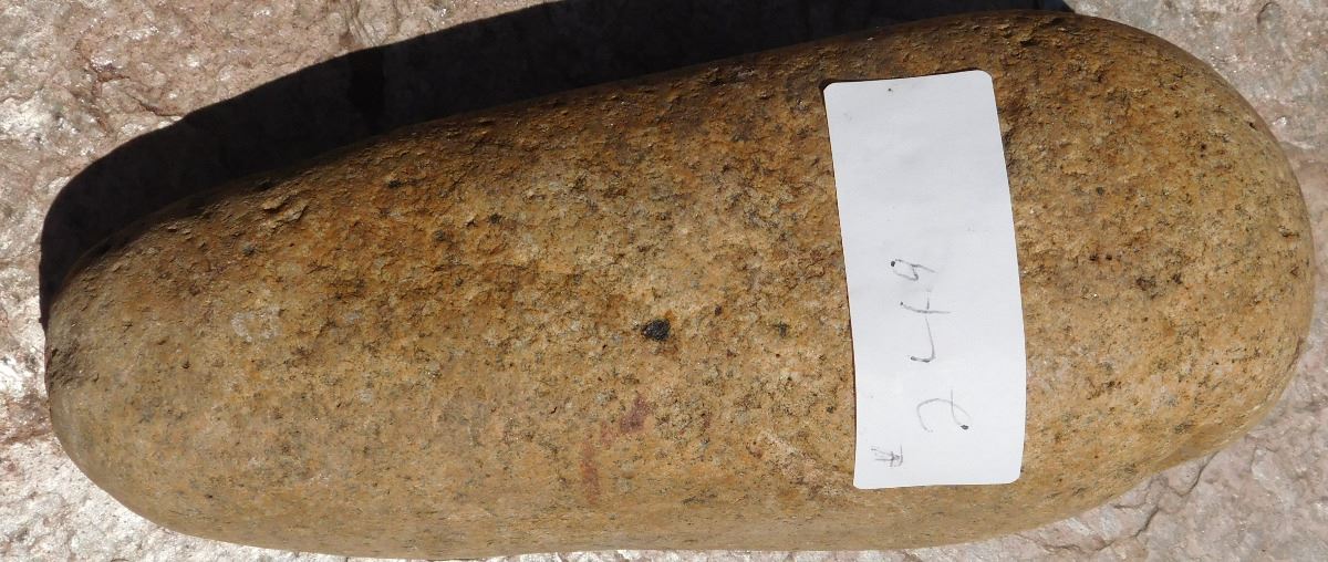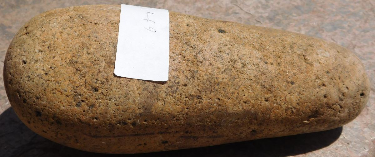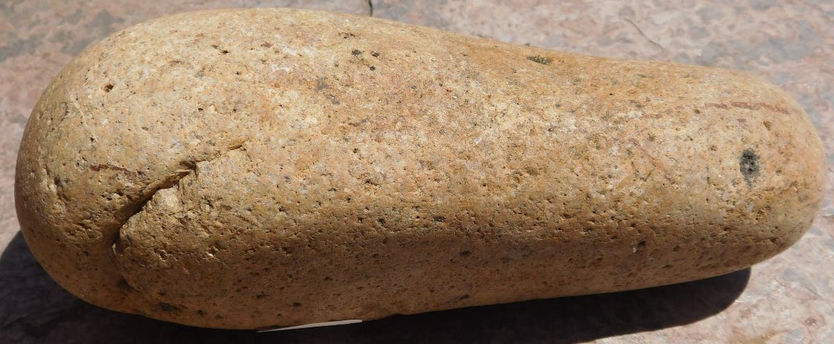 Chumash Stone Pestle, pre-historic item. Made of granite and measuring 8" long. This item was found in San Clemente, Calif. Classic stone pestle. Condition: Some wear, see images. Shipping: $21.50 w/insurance.