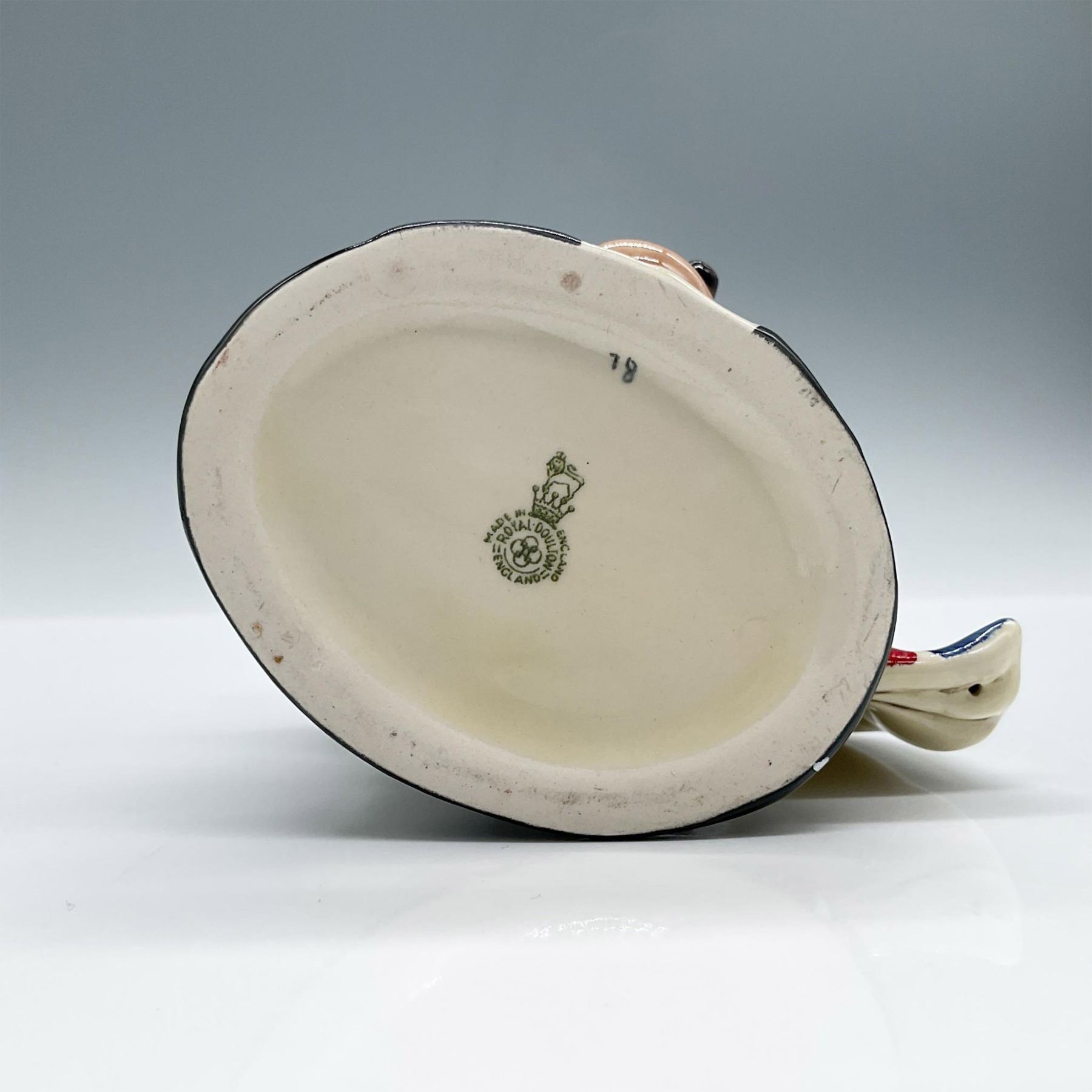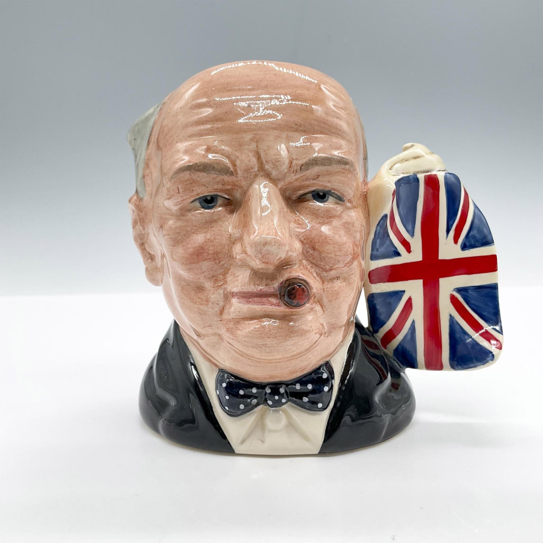 Winston Churchill; Union Jack handle. Churchill in a black coat, white shirt, and black bowtie with white dots. Royal Doulton backstamp.