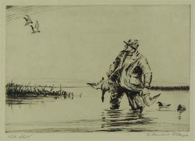 Churchill Ettinger, Etching , (8503) Churchill Ettinger (1903-1984) ( Vermont ), Etching, " Lost Shot", Image Size 9" X 11 3/4", Pencil Signed Lower Right