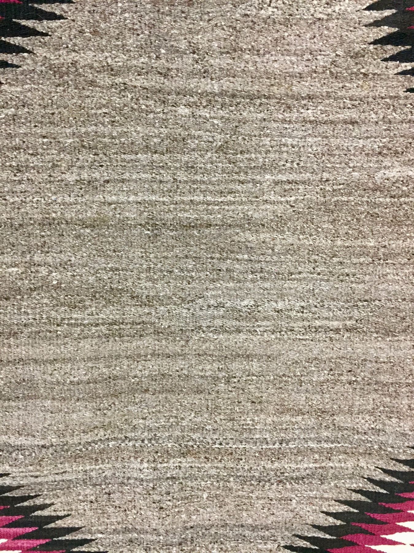 Description: Nice, old Navajo saddle blanket from churro wool and interesting raspberry red in the corners. Maker: Unknown Navajo weaver. Approx. Age: Circa 1920’s. Size: 30” x 34”. Condition: Pretty good for its age, normal wear and fading expected. Please look closely at the pictures - they are an important part of our description. Shipping: There will be a $7 handling / packaging fee for shipping this lot. The actual cost of postage will be added on top of that.