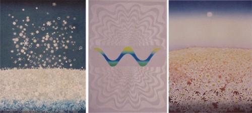 LOOKING AT THE SEA; SNOW FLAKES IN WINTER; DAISIES AT DUSK, 1972, three color woodblock prints on embossed paper, each signed in pencil, from the numbered editions 50 & 100, images 30 x 21 ½” & 21 ¾ x 16 ¼”, full margins, soft creases. (3) $300/500